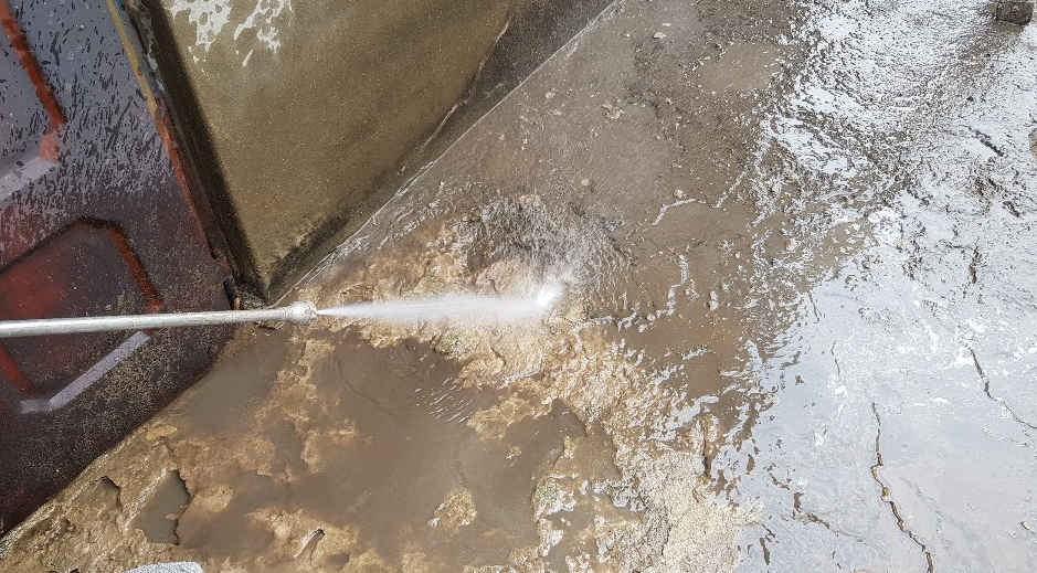 바닥을 정리한 후에는 물청소 작업을 진행합니다.