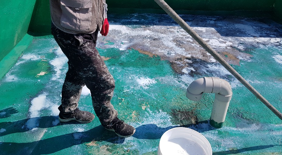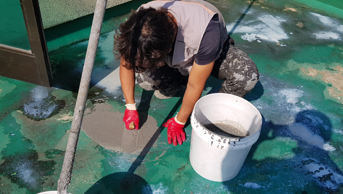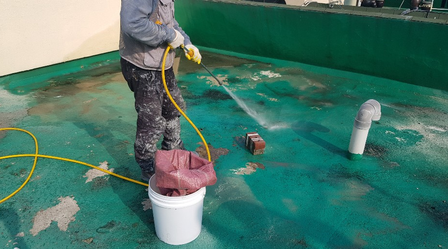 다음 과정은 방수액 도포 작업입니다. 작업에 사용