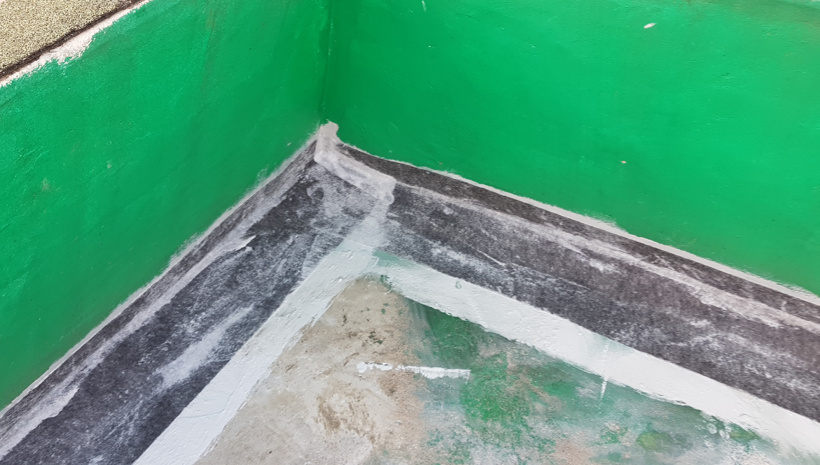 이 아닌 무기질 방수액과 방수 시트를 사용하여 복
