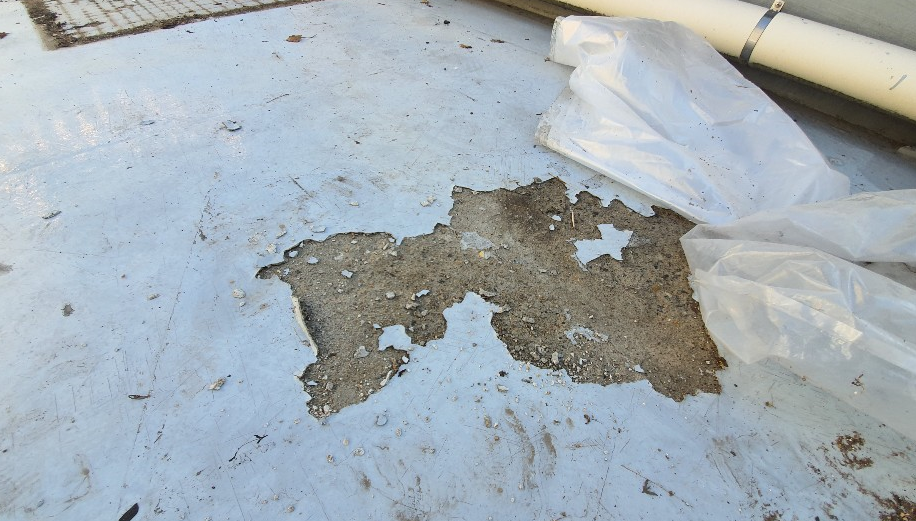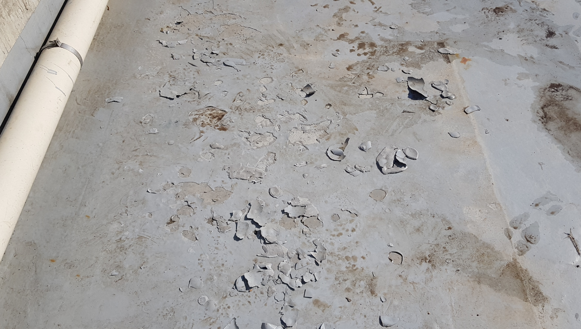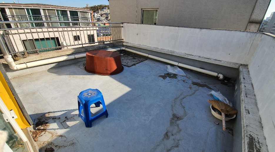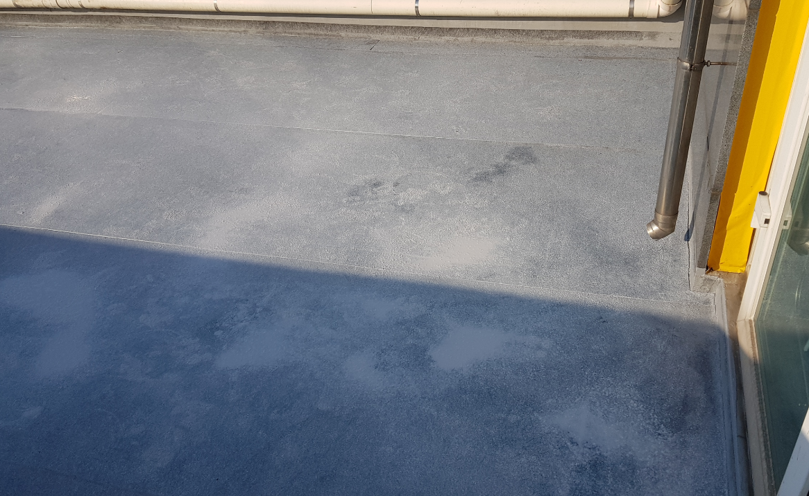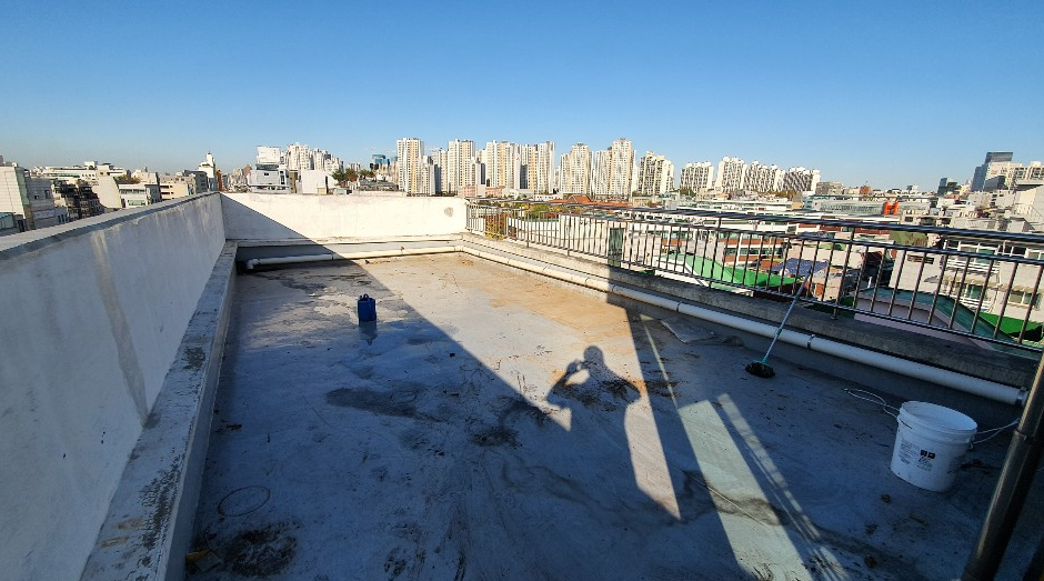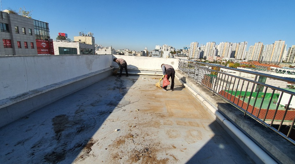 작업 전 옥상을 살펴보면 관리가 제대로 이루어지지 않아 먼지와 각종 이물질이 쌓여 지저분한 것을 볼 수 있습니다.