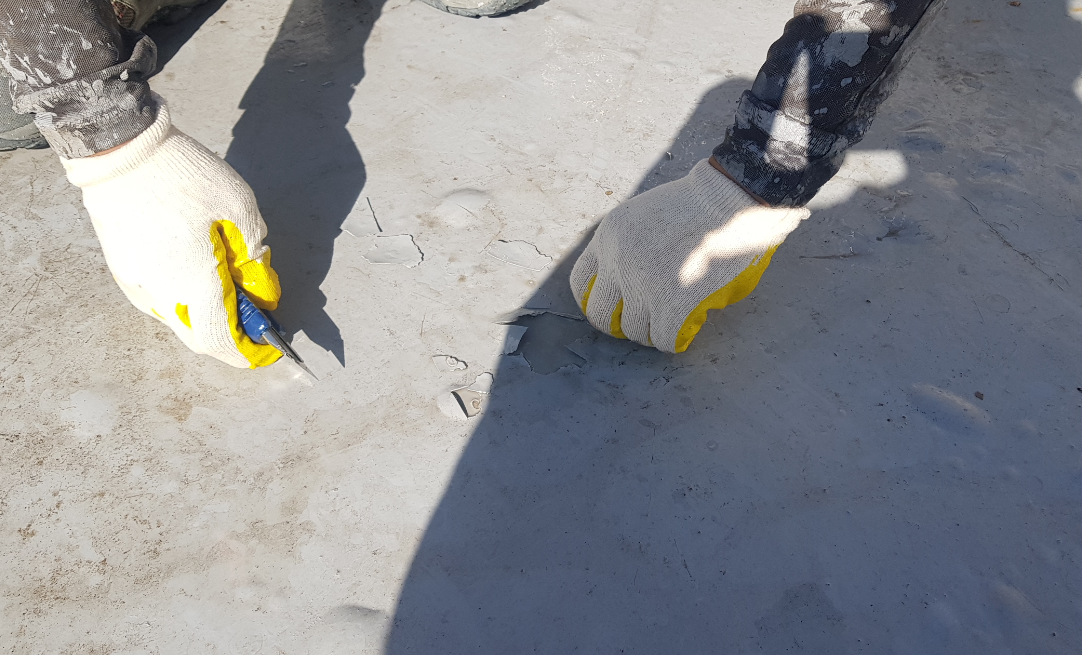 다음 과정은 프라이머 작업입니다. 침투 방수액을 바닥 전체에 도포하는 작업으로 침투 방수의 효과를 주는 역할을 합니다. 또한 바닥에 남아있는 먼지와 이물질을 흡착하여 제거하기도 합니다.