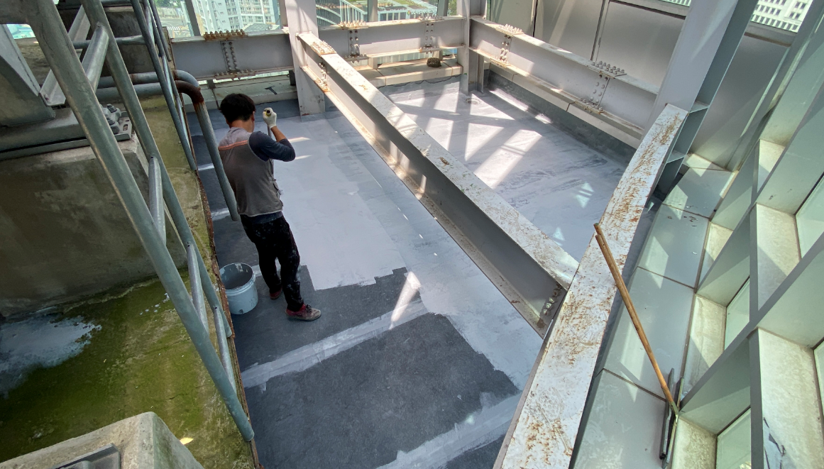 마지막으로 상도 작업을 진행합니다. 상도는 방수액을 보호하고 방수력을 보다 오랫동안 유지할 수 있도록 도와주는 역할을 합니다. 이렇게 방수액과 방수 시트를 이용한 시트 방수의 모든 과정이 마무리됩니다.