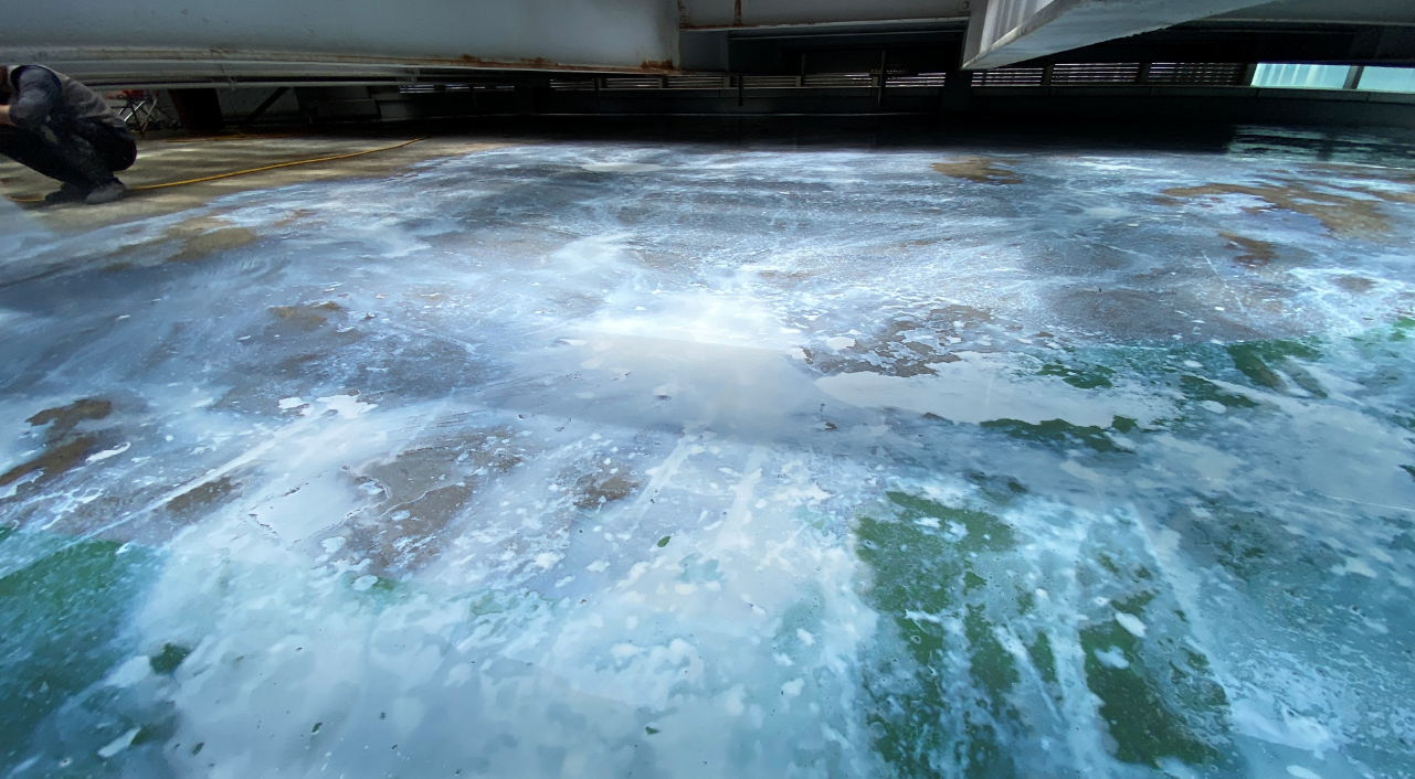 다음은 프라이머 작업입니다. 프라이머는 바닥 전체에 침투 방수액을 도포하는 과정입니다. 이 작업을 통해서 바닥에 침투 방수의 효과를 줄 수 있고, 남아있는 먼지를 흡착하여 제거할 수 있습니다.