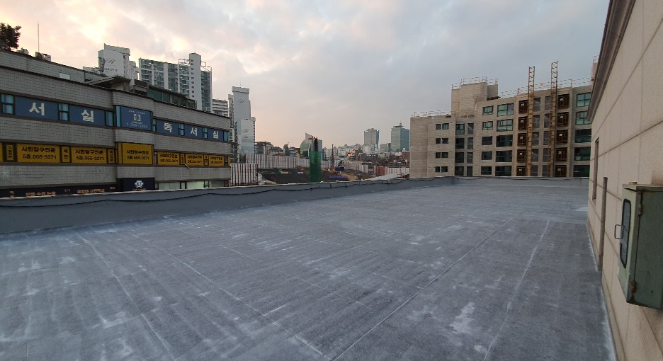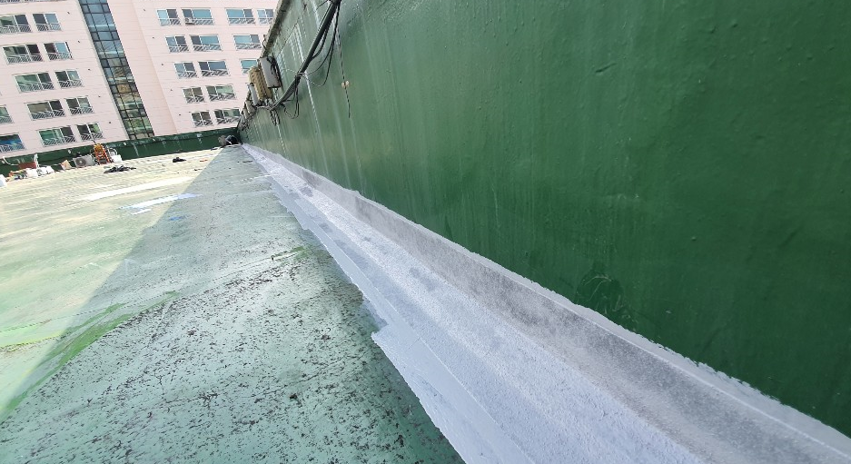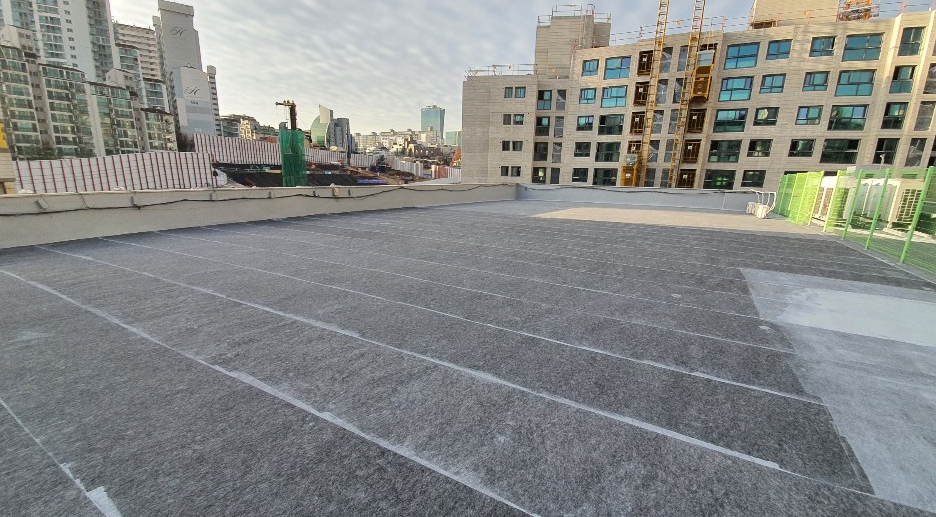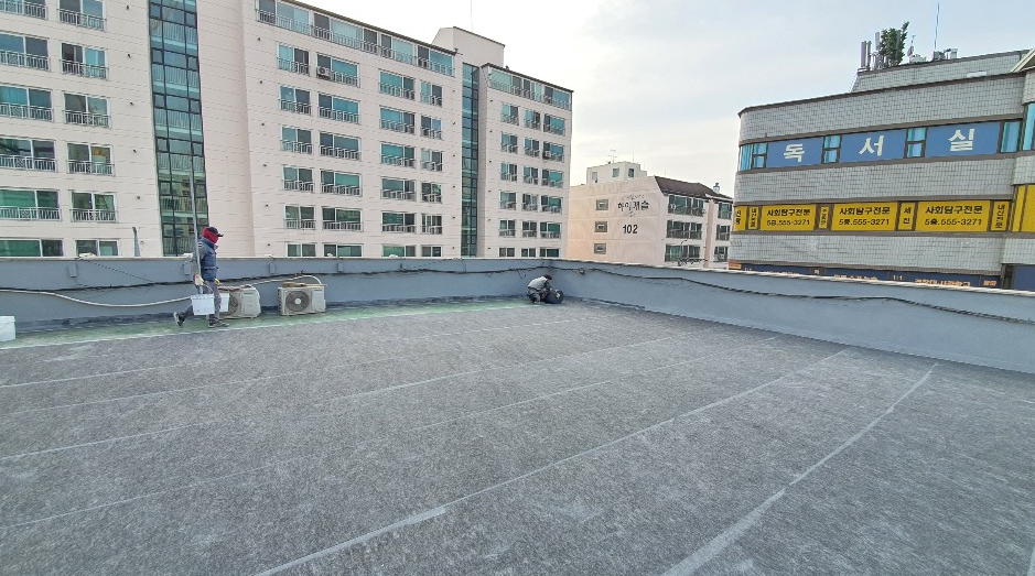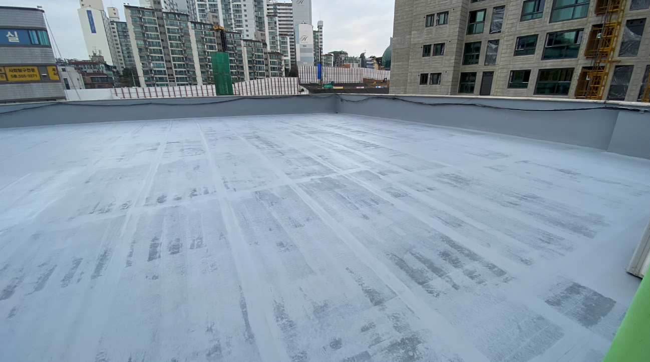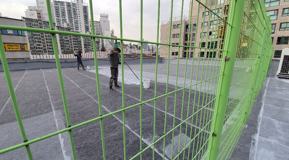 방수액을 보호하기 위한 상도 작업을 마지막으로 복합 시트 방수의 모든 과정이 마무리됩니다. 옥상이 반영구적인 방수 수명을 갖게 되기 때문에 옥상누수의 걱정이 없습니다.