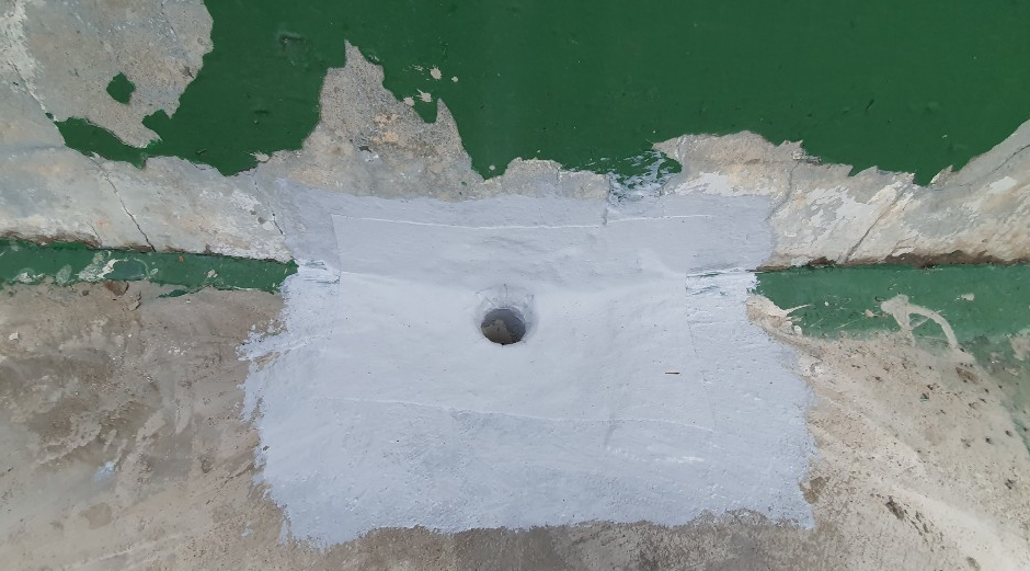 다음으로 진행하는 함침 작업은 방수 시트와 옥상 바닥을 서로 일체화시키는 작업입니다. 함침은 침투 방수액을 방수 시트 위에 전체적으로 도포하여 진행합니다.
