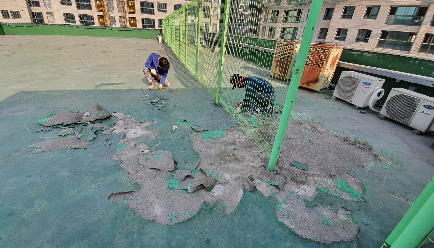 우선 하자가 있는 부분을 제거하기 시작합니다. 만일 옥상의 하자를 그대로 두고 시공을 하면 결국 그곳으로 누수가 다시 발생하기 때문에 먼저 가능한 한 제거를 하고 본격적인 작업을 시작합니다.