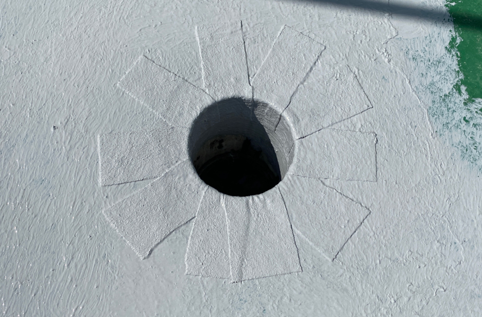 기초 시트 작업은 누수에 취약한 부분을 보완하기 위한 선행 작업이라고 할 수 있습니다. 물이 흘러내려가는 우수관부터 작업을 시작합니다.