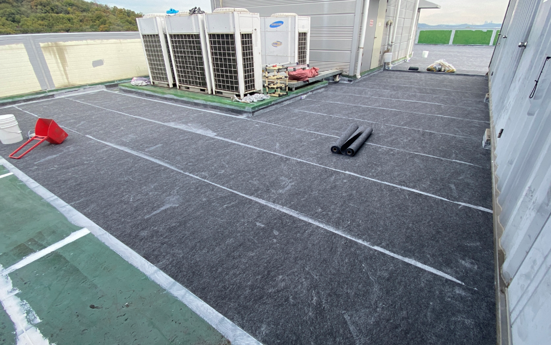 마지막 상도 작업까지 마치면 빗물 누수로 인해 진행한 복합 시트 방수의 모든 과정이 마무리됩니다.