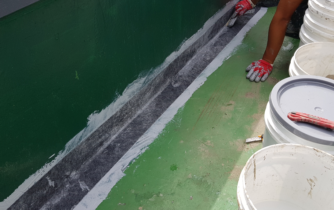 방수 시트를 바닥에 부착할 때 생기는 사이의 틈으로 누수가 발생할 수 있기 때문에 이 틈을 막기 위한 작업이 필요합니다. 방수 시트 밴드를 길게 부착하여 틈을 막는 이 작업을 보강 시트 작업이라고 부릅니다.