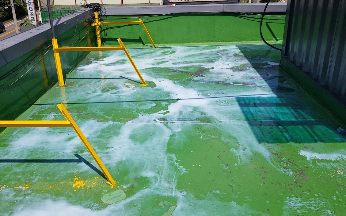 방수액을 보호하고 방수력을 오래 유지하기 위해 상도 작업을 마무리하면 방수 수명이 짧은 우레탄 페인트 대신 계속해서 고쳐 쓸 수 있는 옥상이 완성됩니다.