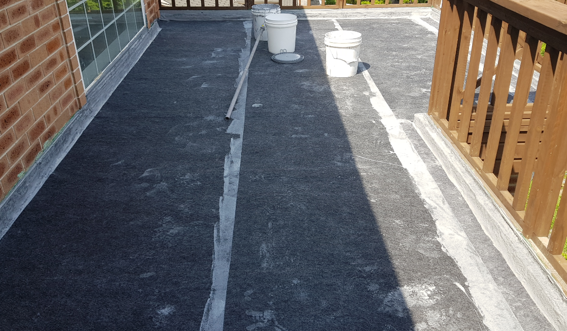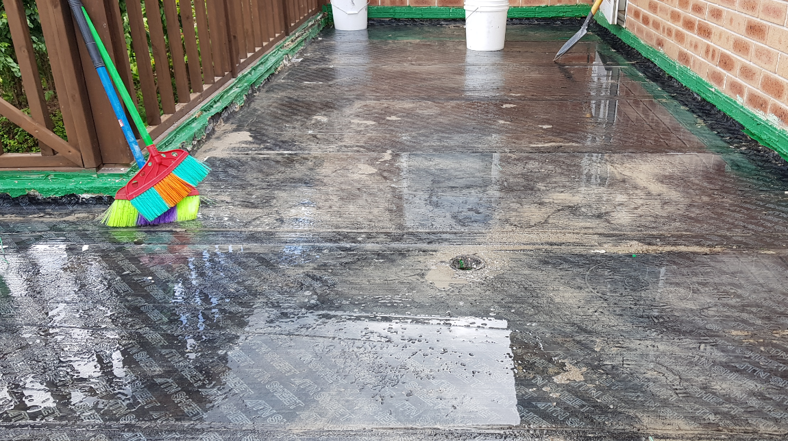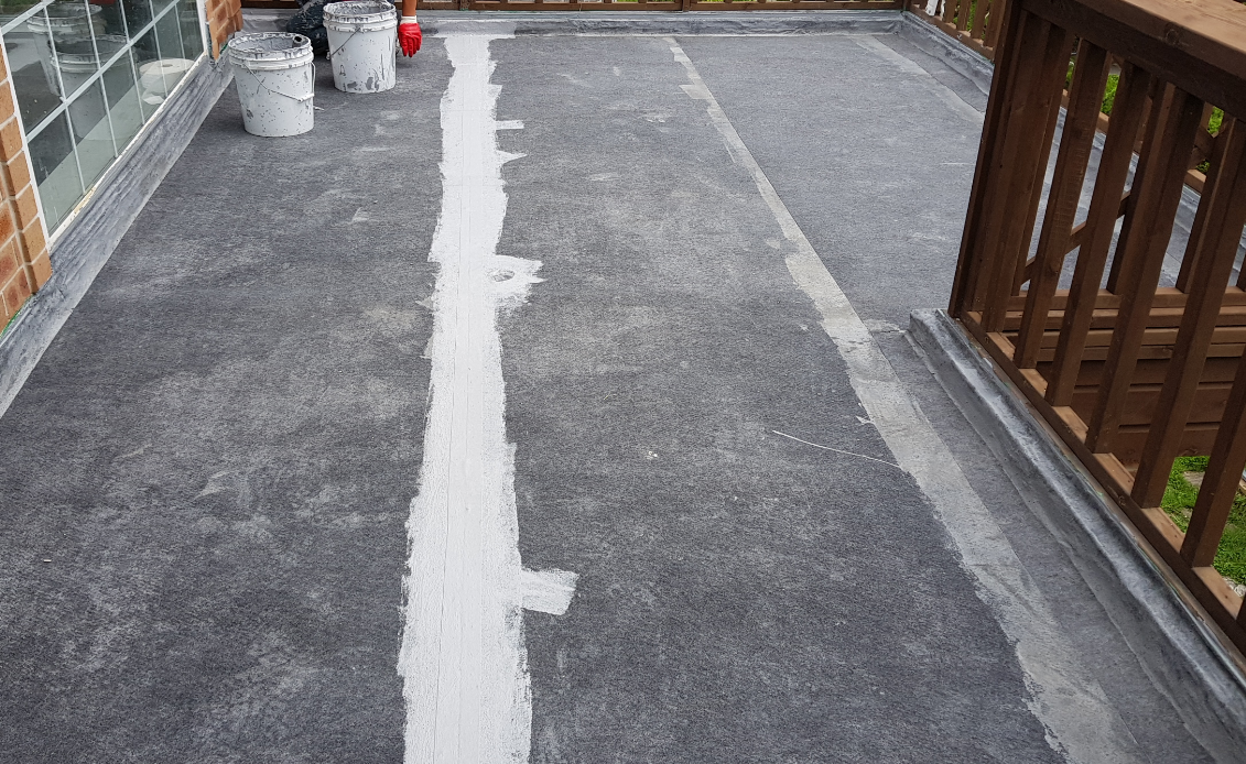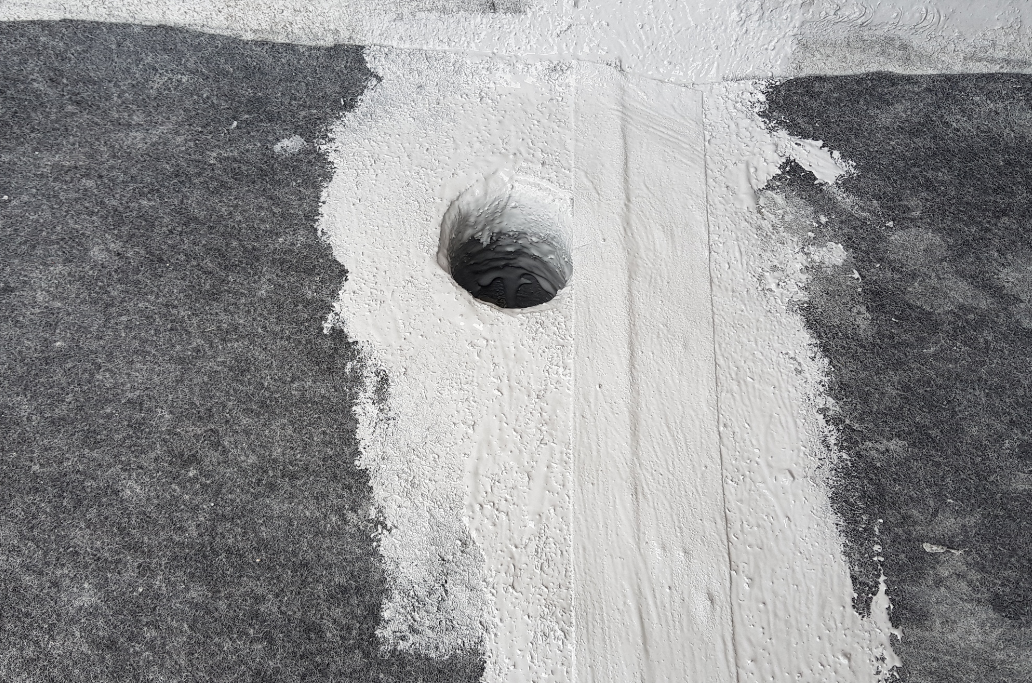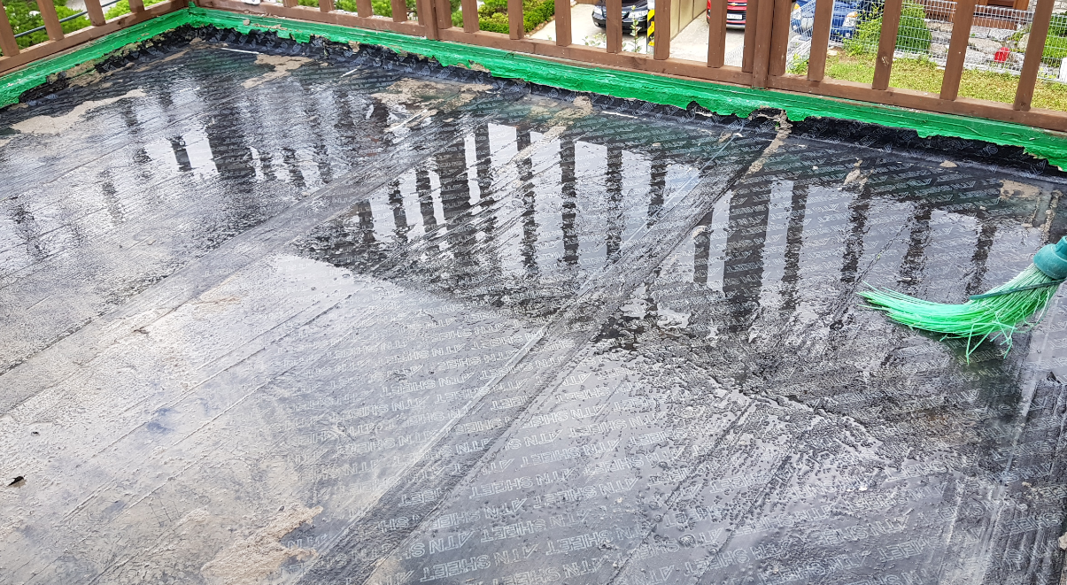 누수에 취약한 우수관과 조인트 부분은 기초 작업을 해서 보완합니다. 방수액과 방수 시트를 함께 사용하여 작업합니다. 이 과정을 기초 시트 작업이라고 부릅니다.