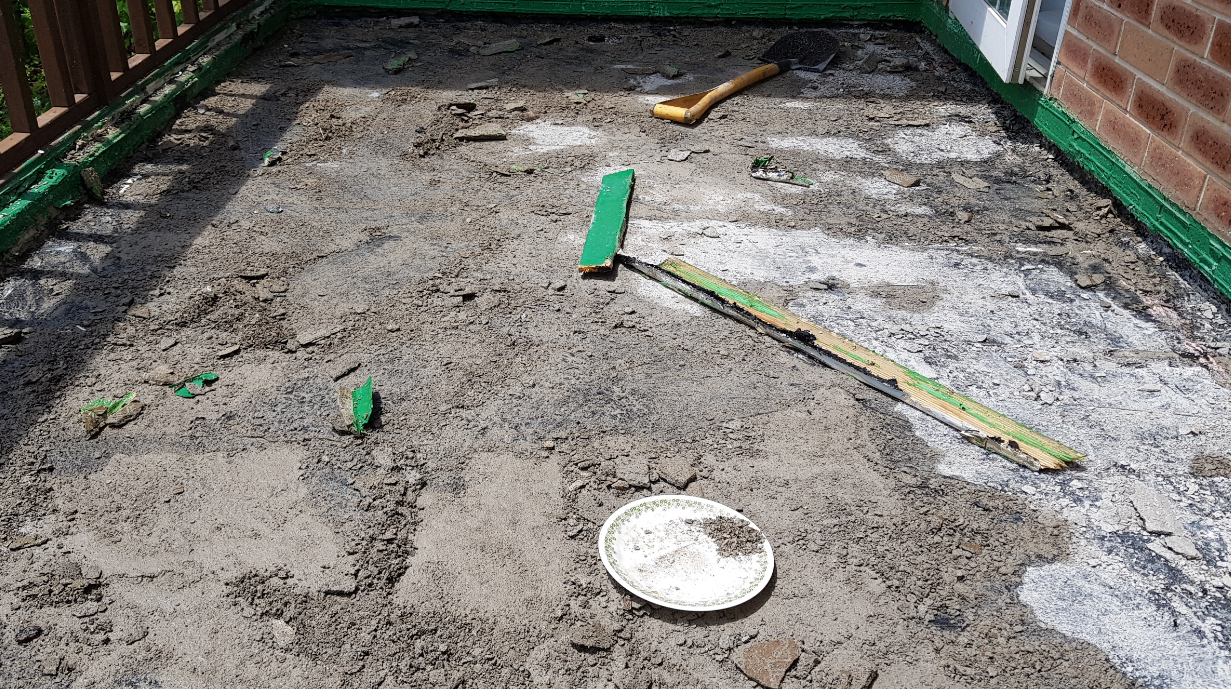 더 이상 쓸 수 없는 우레탄 바닥은 모두 들어내고, 바닥을 깔끔하게 정리합니다. 하자가 발생한 바닥 위에 아무리 방수 시공을 해봐야 누수는 다시 일어나기 때문에 가능한 한 문제가 있는 부분을 제거하는 것이 좋습니다.