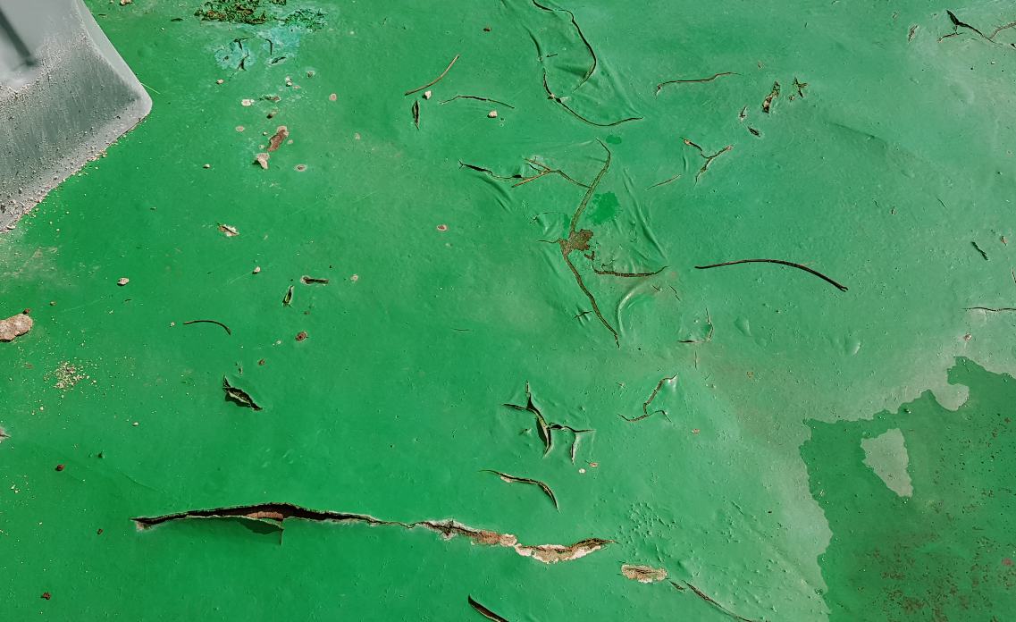 하자가 발생한 옥상 테라스의 모습입니다. 우레탄은 방수력의 유지 기간이 짧기 때문에 1년에서 2년 정도가 지나면 터지거나 갈라지는 문제가 발생합니다.