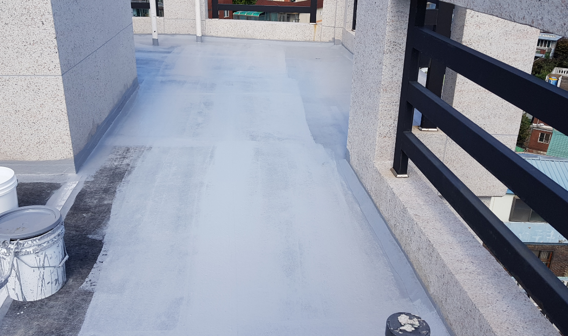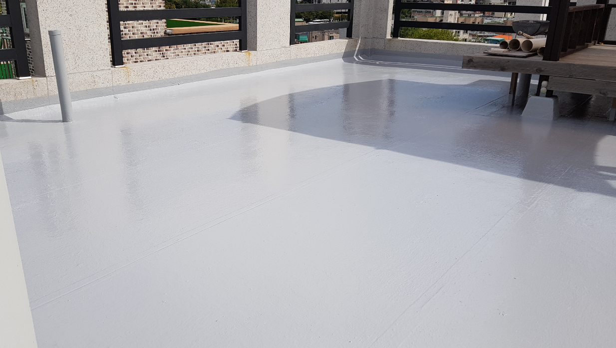 옥상 방수 공사에 사용하는 방수액은 돌가루를 원료로 만든 친환경 방수액입니다. 천연 자재이기 때문에 인체에 무해하고 화학 제품 특유의 유해한 냄새가 없어서 시공 후에도 쾌적합니다.
