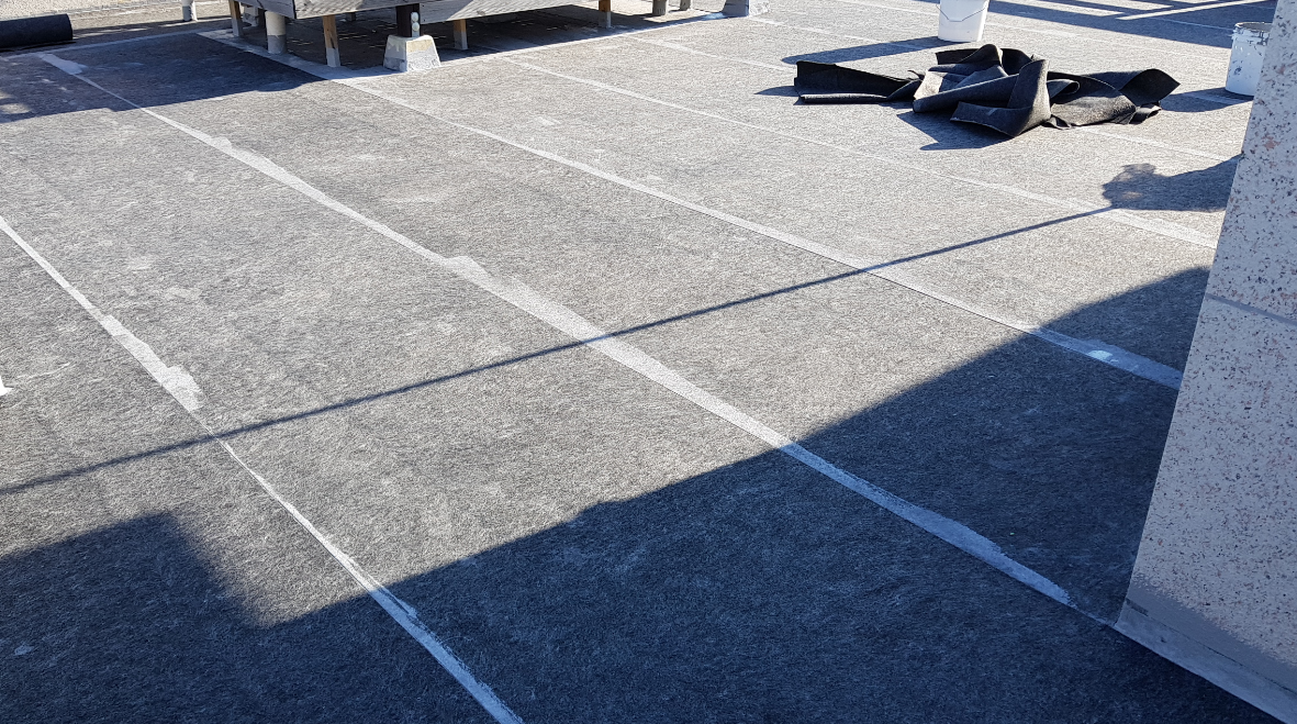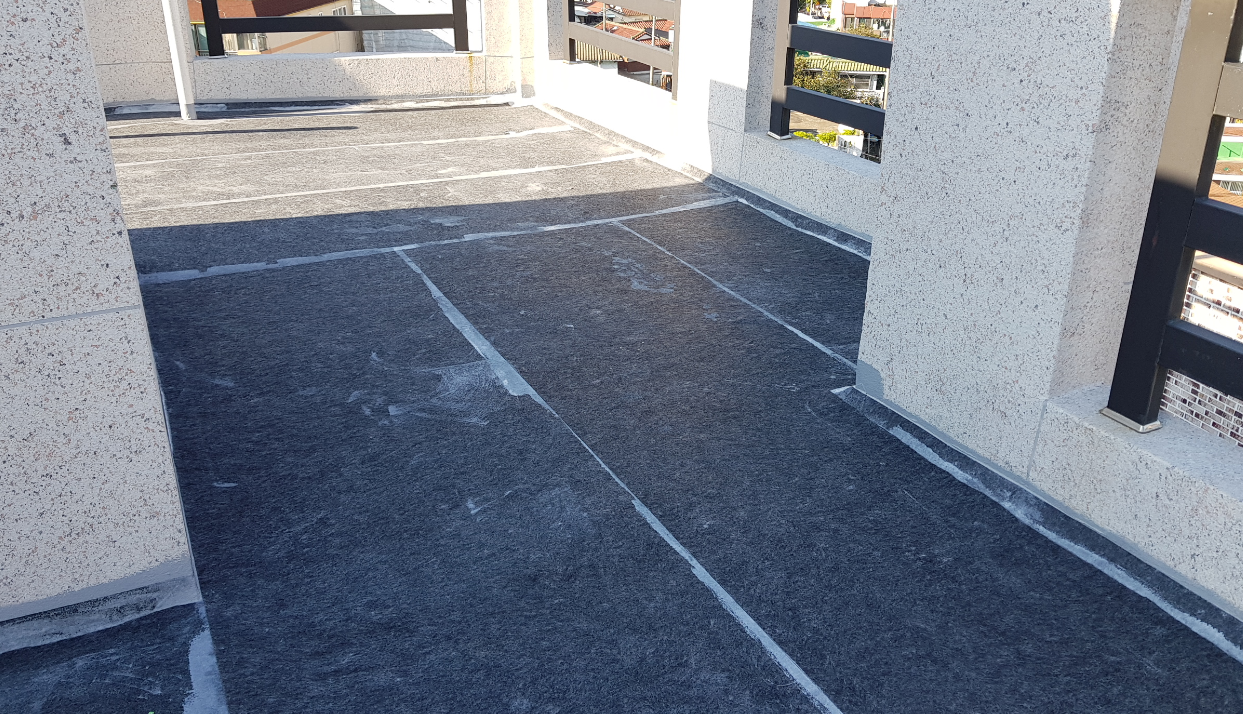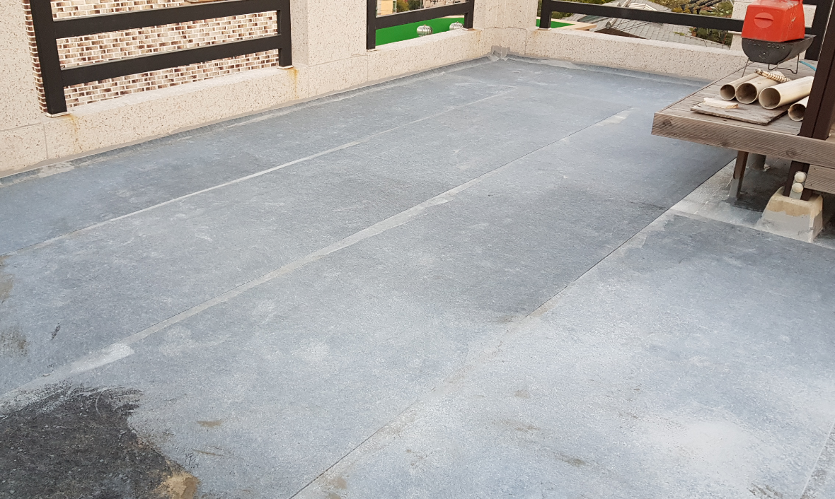 기초 작업 후에는 본격적으로 옥상 바닥 전체에 방수 시트를 부착합니다. 작업에 사용하는 시트는 신축성이 뛰어나기 때문에 크랙을 잘 잡아주고, 앞서 말씀드린 건물의 수축과 팽창에도 잘 견딜 수 있어서 건물 수명의 연장에 도움을 줍니다.