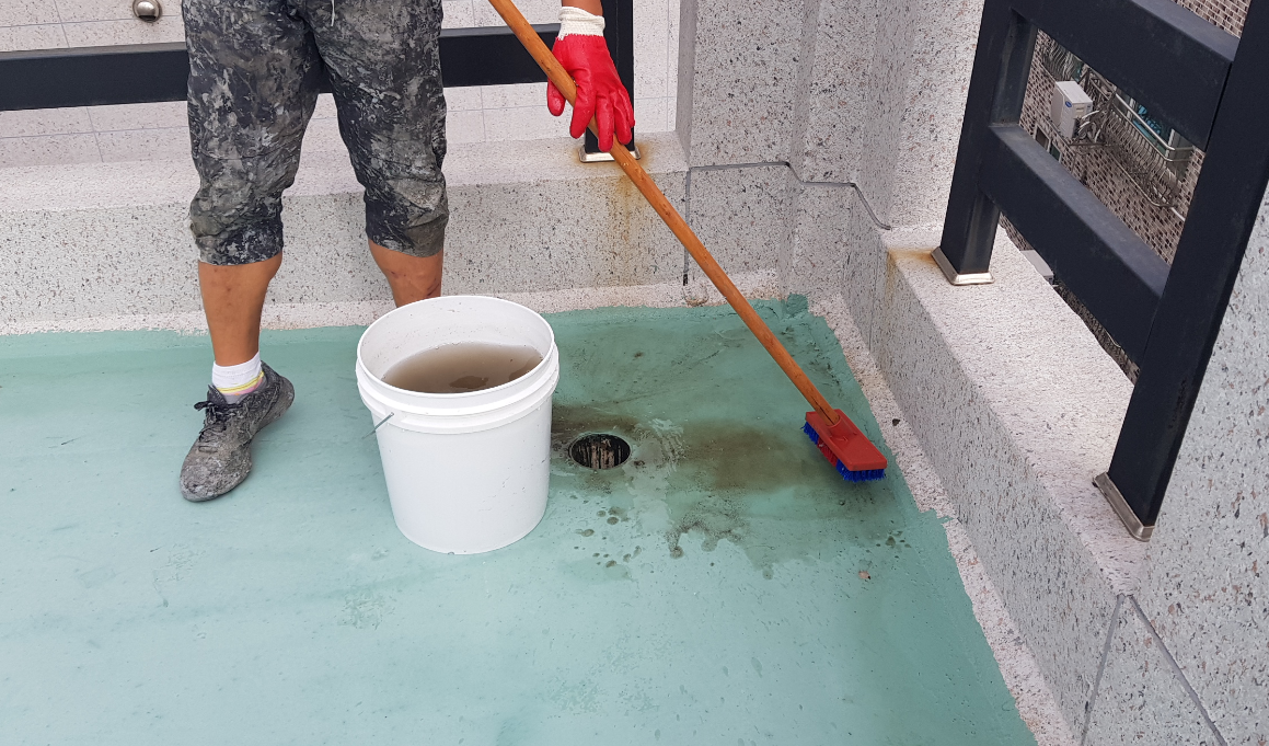 시공 전에 먼저 바닥을 간단하게 청소합니다. 옥상에 먼지와 각종 이물질을 제거해 작업에 방해가 되지 않도록 하고, 하자의 재발도 막기 위한 작업입니다.