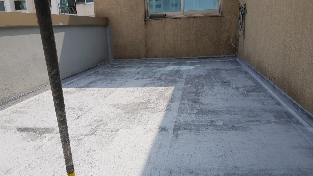 본격적으로 복합 시트 방수를 시공하기에 앞서 바닥일 간단하게 정리하고 물청소를 합니다. 먼지와 이물질을 제거하고 물기가 마른 뒤 다음 작업을 진행합니다.