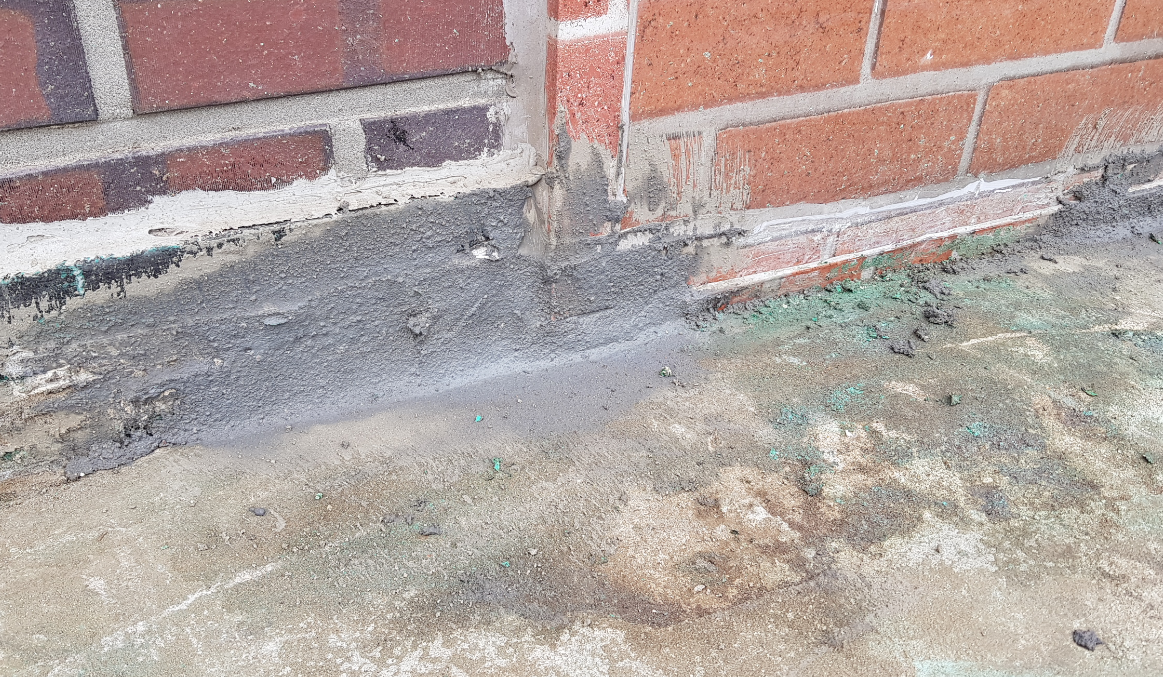 더 자세하게 살펴보면 누수에 취약한 우수관과 벽체 조인트 부분에 하자가 생긴 것을 발견할 수 있습니다. 우레탄 방수에서 하자가 발생한 만큼 이번에는 방수 시트와 방수액을 함께 사용해 복합 시트 방수를 시공하기로 결정했습니다.