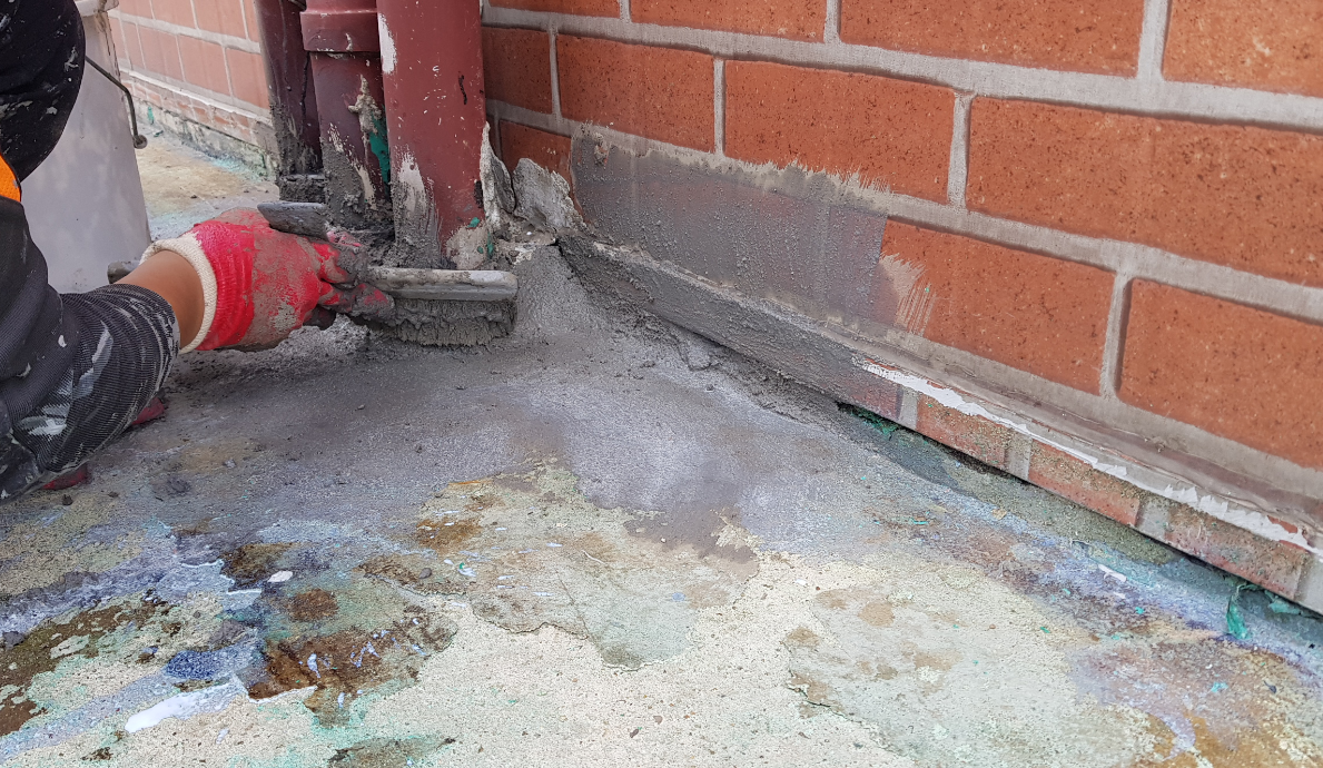 면이 고르지 않은 바닥이나 조인트 부분의 하자 등에는 미장 작업이 필요합니다. 몰탈과 침투 방수액을 일정한 비율로 혼합하여 미장 작업을 진행해 고르고 평평하게 만들어줍니다.