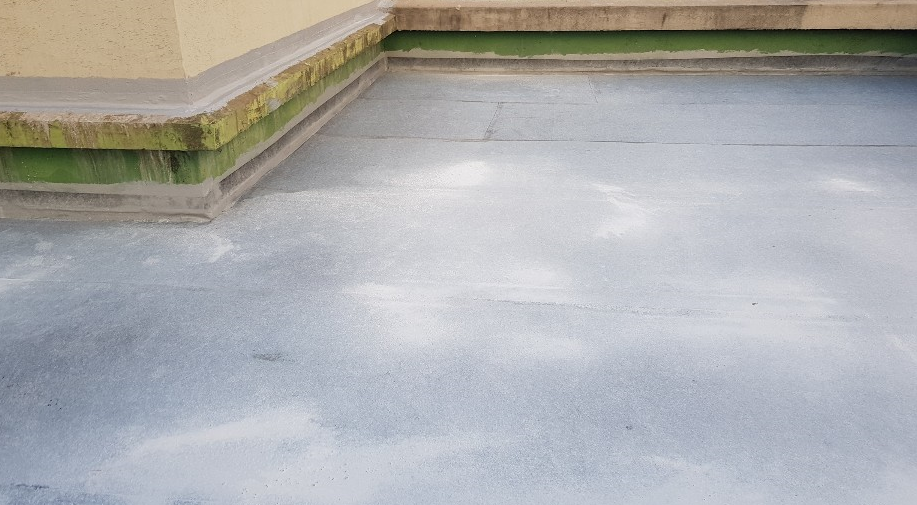 우레탄으로 시공한 옥상의 모습입니다. 오랜 시간이 지남에 따라 먼지와 각종 이물질이 쌓여있는 것을 볼 수 있습니다. 본격적인 시공에 들어가기 전에 바닥을 정리해 방해가 되는 것들을 없애고, 물청소를 진행할 예정입니다.