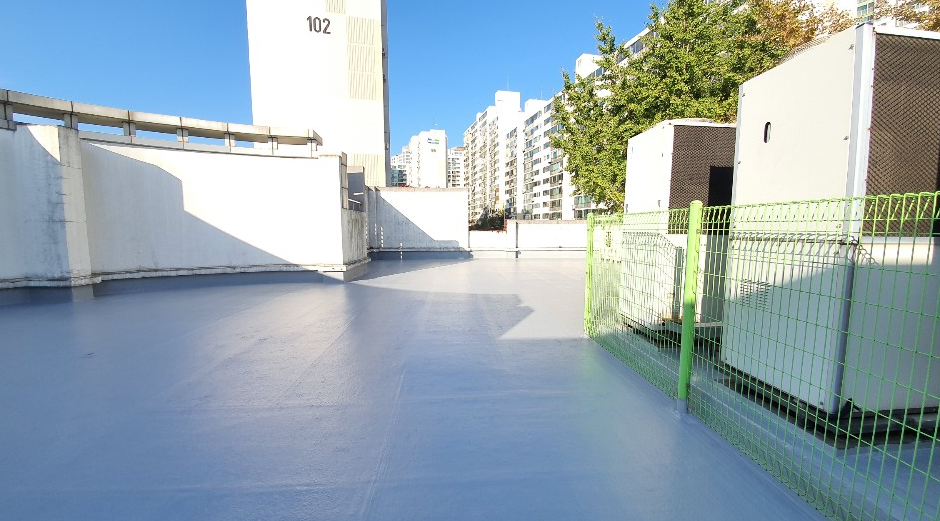 마지막으로 자외선을 차단하여 친환경 방수제를 보호하기 위해 상도를 진행합니다. 상도 작업으로 복합방수의 방수력을 더욱 오랫동안 유지할 수 있습니다. 하자 보증 기간은 6년으로 이후에도 고쳐쓸 수 있는 옥상이 완성됩니다.