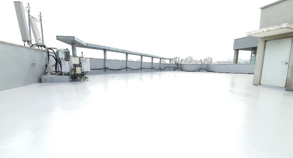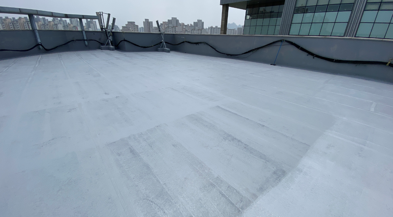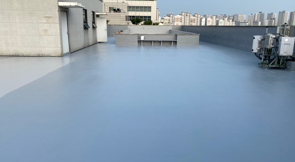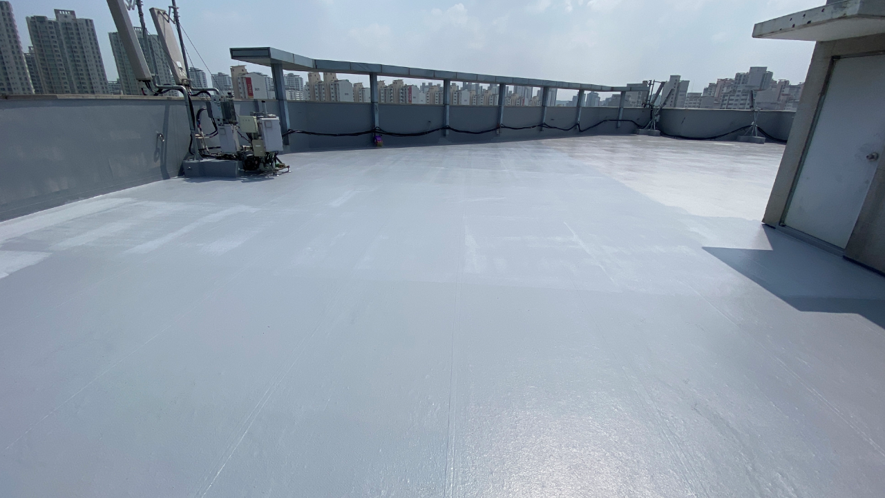 방수액 도포 후에는 친환경 방수액을 보호하기 위해 상도 작업을 합니다. 상도는 자외선을 차단하여 방수액을 보호합니다. 이 과정을 마지막으로 방수액과 방수시트를 복합적으로 사용하는 복합시트 방수로 진행한 방수공사의 모든 과정이 마무리됩니다.