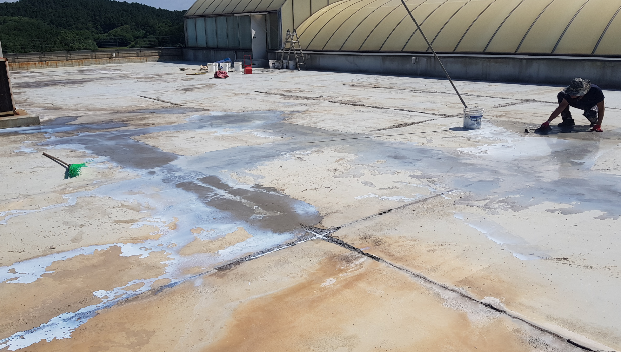 다음은 프라이머 작업입니다. 침투 방수액을 바닥 전체에 도포하는 작업으로 침투 방수액이 바닥에 스며들어 1차적인 침투 방수의 효과를 줄 수 있고, 미세한 먼지와 이물질을 흡착하여 제거하는 역할도 합니다.