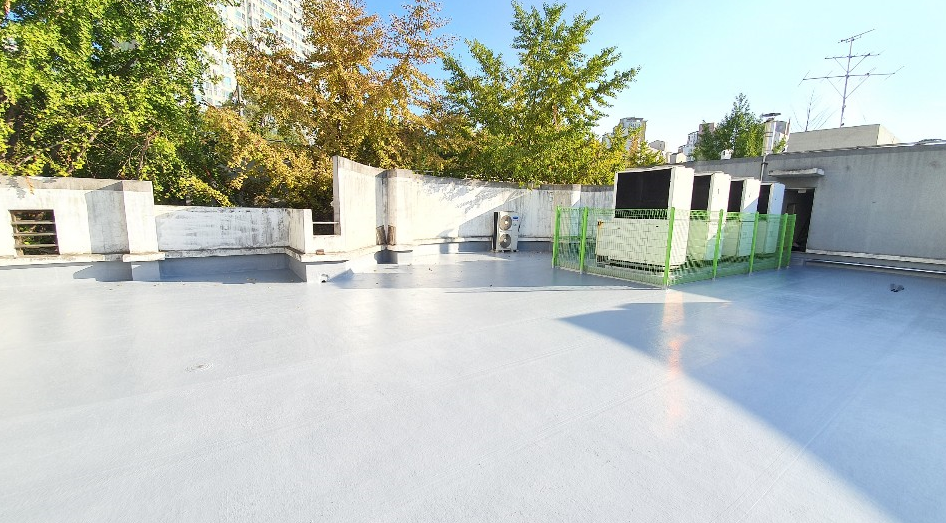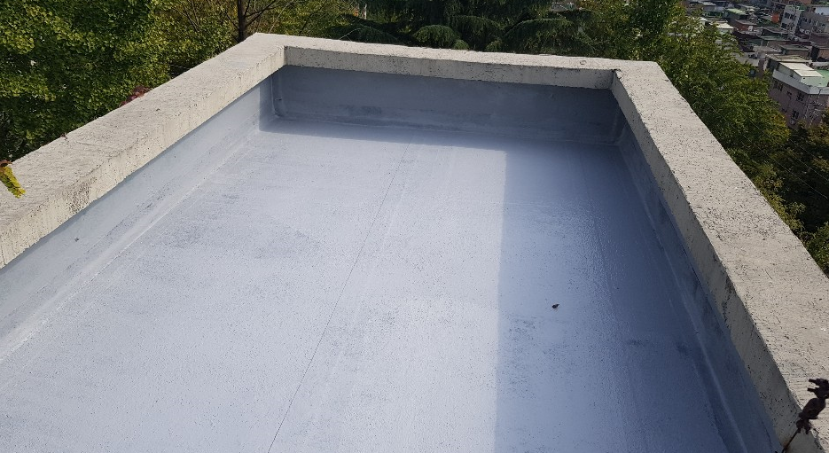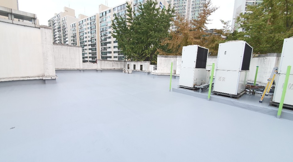 마무리 작업으로 자외선을 차단하여 방수층을 보호하기 위한 상도 작업을 진행합니다. 이 과정을 마지막으로 방수액과 방수시트를 함께 사용하는 복합시트 방수로 작업한 옥상방수의 모든 과정이 마무리됩니다.