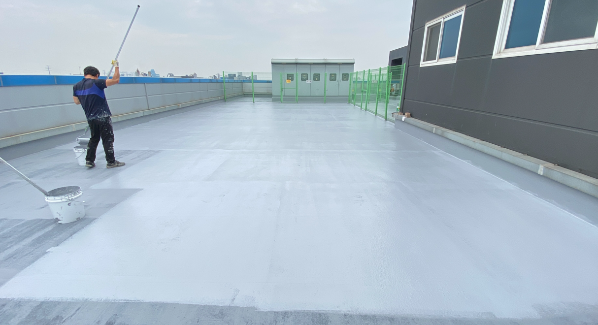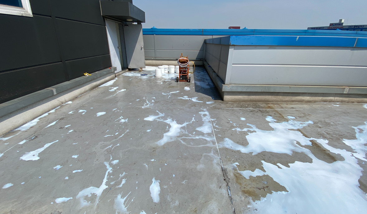 다음은 방수액 코팅 작업입니다. 시트 작업 후 방수액으로 방수층을 쌓는 작업으로 총 3회 진행합니다. 모든 작업을 더해 총 7겹의 방수층을 형성하기 때문에 방수력이 뛰어나고 크랙을 확실하게 잡아줘 방수력이 오랜 기간 유지됩니다.