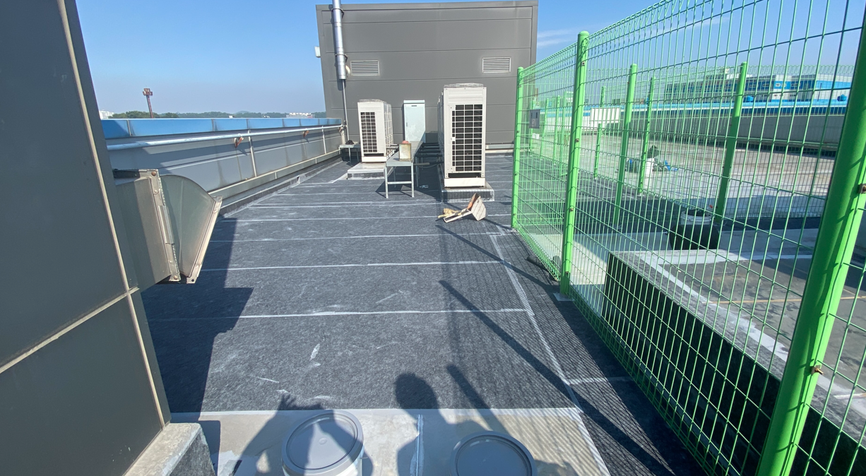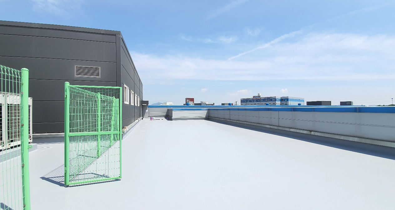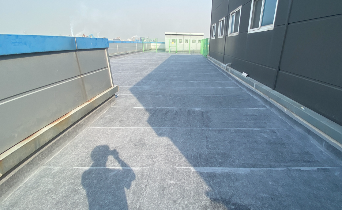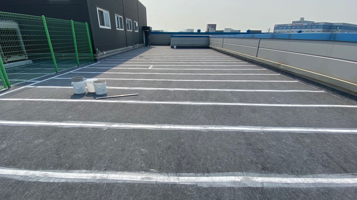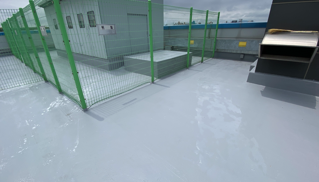 자외선을 차단하여 방수층을 보호하는 역할을 하는 상도 작업을 마지막으로 복합시트 방수로 진행한 옥상방수의 모든 과정이 마무리됩니다. 하자 보증 기간은 6년이며 특별한 문제없이 관리가 잘 된다면 반영구적으로 옥상을 사용할 수 있습니다.