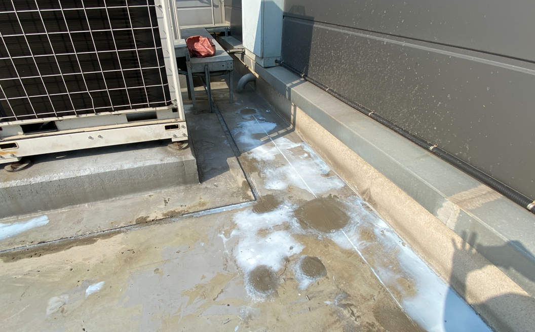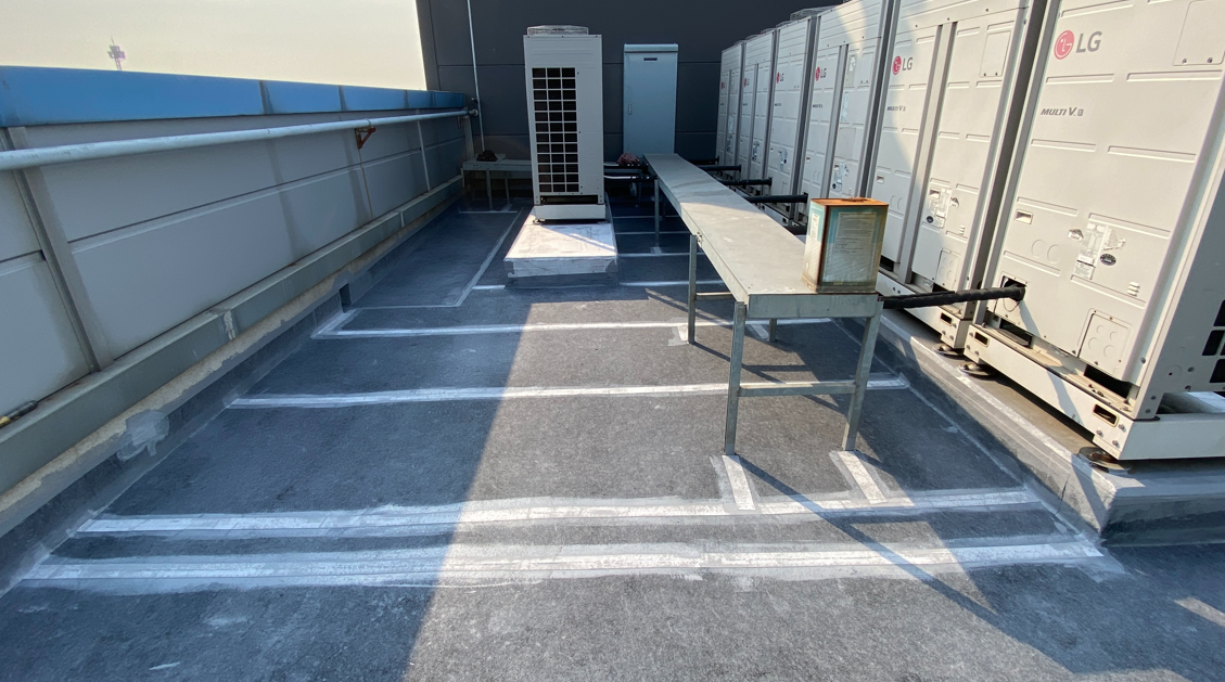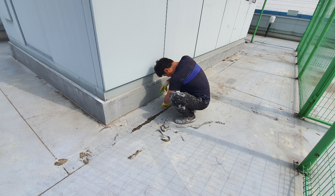 하자가 발생한 옥상입니다. 기존에는 그냥 칠만 되어있는 상태로 많은 곳이 벗겨지고 갈라진 모습입니다. 복합시트 방수를 시공하여 누수를 한 번에 잡을 수 있을 것으로 기대합니다.