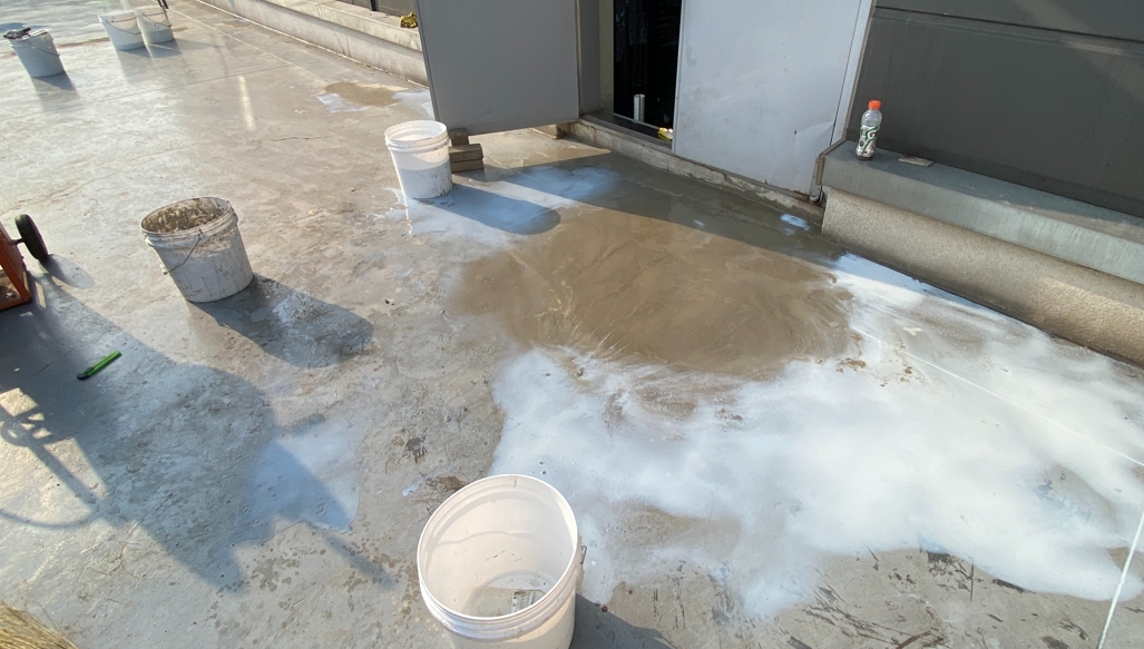 다음은 프라이머 작업입니다. 프라이머는 침투 방수액을 바닥 전체에 도포하는 작업으로 바닥에 스며들어 침투 방수의 효과를 주고 미세하게 남은 먼지와 이물질을 제거하는 역할을 합니다.