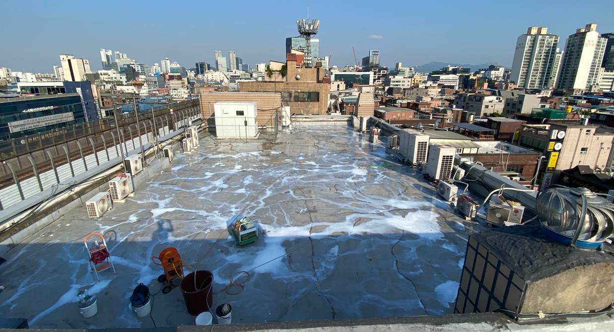 우레탄 도막방수는 시공 비용이 저렴하고 시공 과정이 간편하여 우리 주변에서 가장 흔하게 볼 수 있는 옥상 방수 방법입니다. 하지만 크랙 억제력이 약하기 때문에 하자가 쉽게 발생한다는 단점 또한 가지고 있습니다. 그래서 우레탄 도막방수보다는 방수액과 방수시트를 함께 사용하는 복합시트 방수를 해보기로 했습니다.