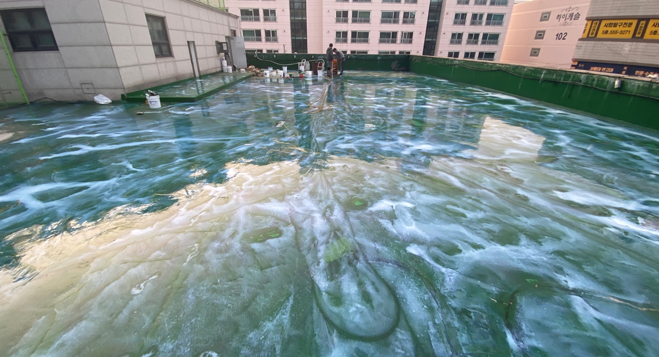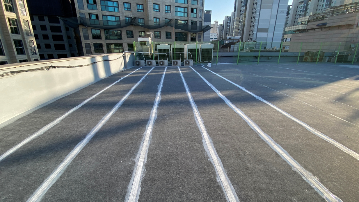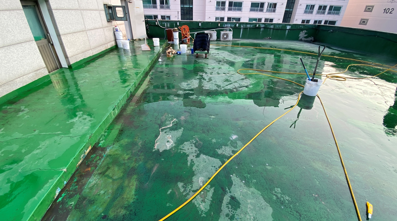 마지막 작업으로 상도를 진행하면 우레탄 코팅의 단점을 보완하기 위해 방수액과 방수시트를 함께 사용해 작업한 옥상 방수의 모든 과정이 마무리됩니다.