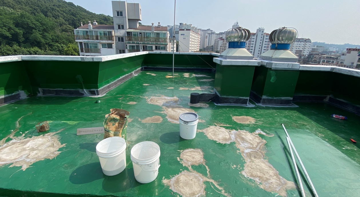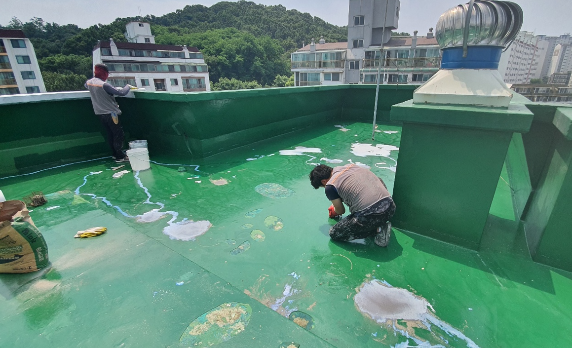 마지막 작업은 상도입니다. 상도는 자외선을 차단하여 방수액을 보호하는 역할을 하는 과정입니다. 현재 상황에 맞는 업체 선정과 비용 등 여러 가지를 잘 따져서 튼튼하게 방수공사를 하는 것이 무엇보다 중요합니다.