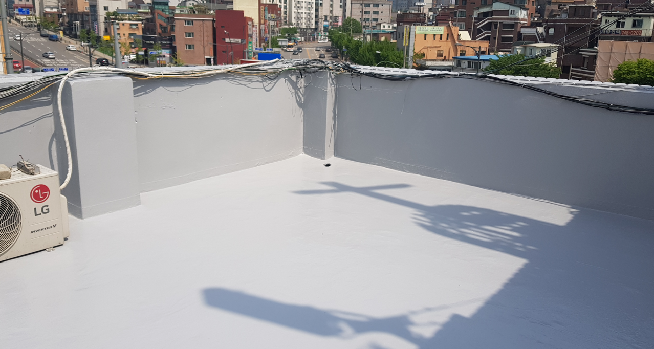 마지막으로 방수액 층을 보호하고 자외선을 차단하기 위해 상도를 진행합니다. 상도를 마지막으로 우레탄 방수의 하자를 해결하기 위해 진행한 방수 공사의 모든 과정이 마무리됩니다. 방수액과 방수시트를 함께 사용한 작업이기에 방수력이 보다 오래갑니다.