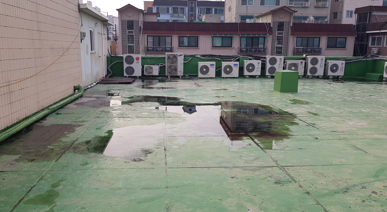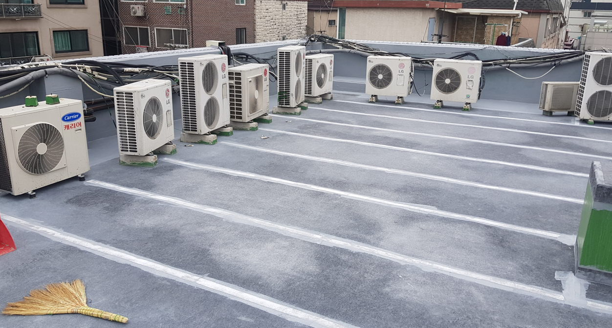 우레탄 방수는 우리 주변에서 가장 흔하게 볼 수 있는 옥상 방수의 한 형태입니다. 하도, 중도, 상도의 3단계로 진행되는 간단한 과정과 비교적 비용이 저렴하다는 점 때문에 많이 시공합니다. 하지만 우레탄 방수는 옥상의 크랙을 잡아주기에는 무리가 있어 하자가 쉽게 발생하고, 그 위에 덧칠을 해도 계속해서 갈라지고 터지는 악순환이 반복됩니다.