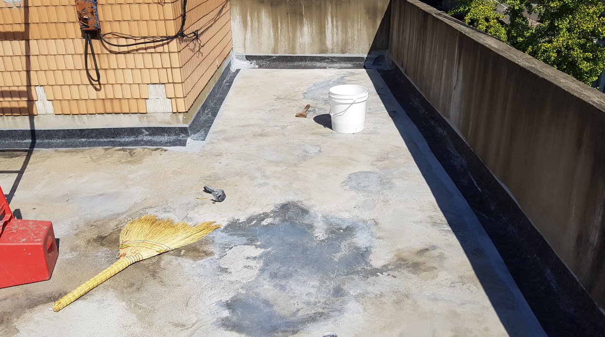 현재 바닥의 상태는 그냥 콘크리트로 된 맨바닥입니다. 보통은 옥상에는 우레탄으로 방수 작업을 많이 합니다. 하지만 우레탄은 화학 제품일뿐더러 크랙을 억제하는 힘이 없어 1년에서 2년 정도가 지나면 하자가 다시 발생합니다.