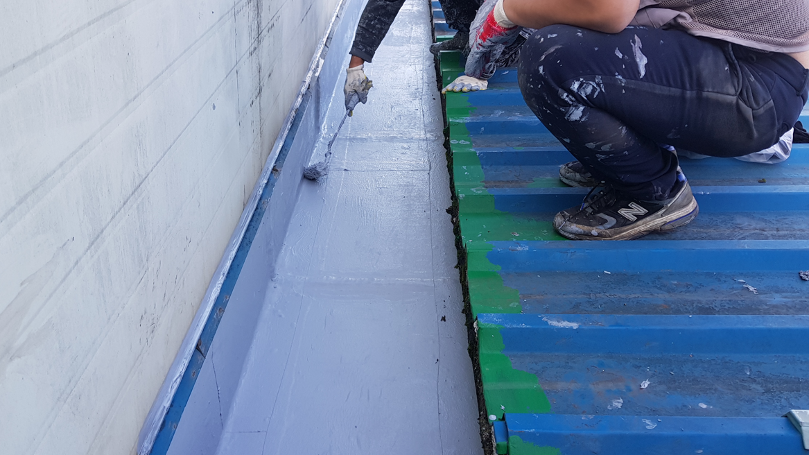 마지막으로 자외선으로부터 방수층을 보호하기 위해 상도 작업을 합니다. 상도를 마지막으로 방수액과 시트로 작업한 샌드위치 판넬 방수의 모든 과정이 마무리됩니다.