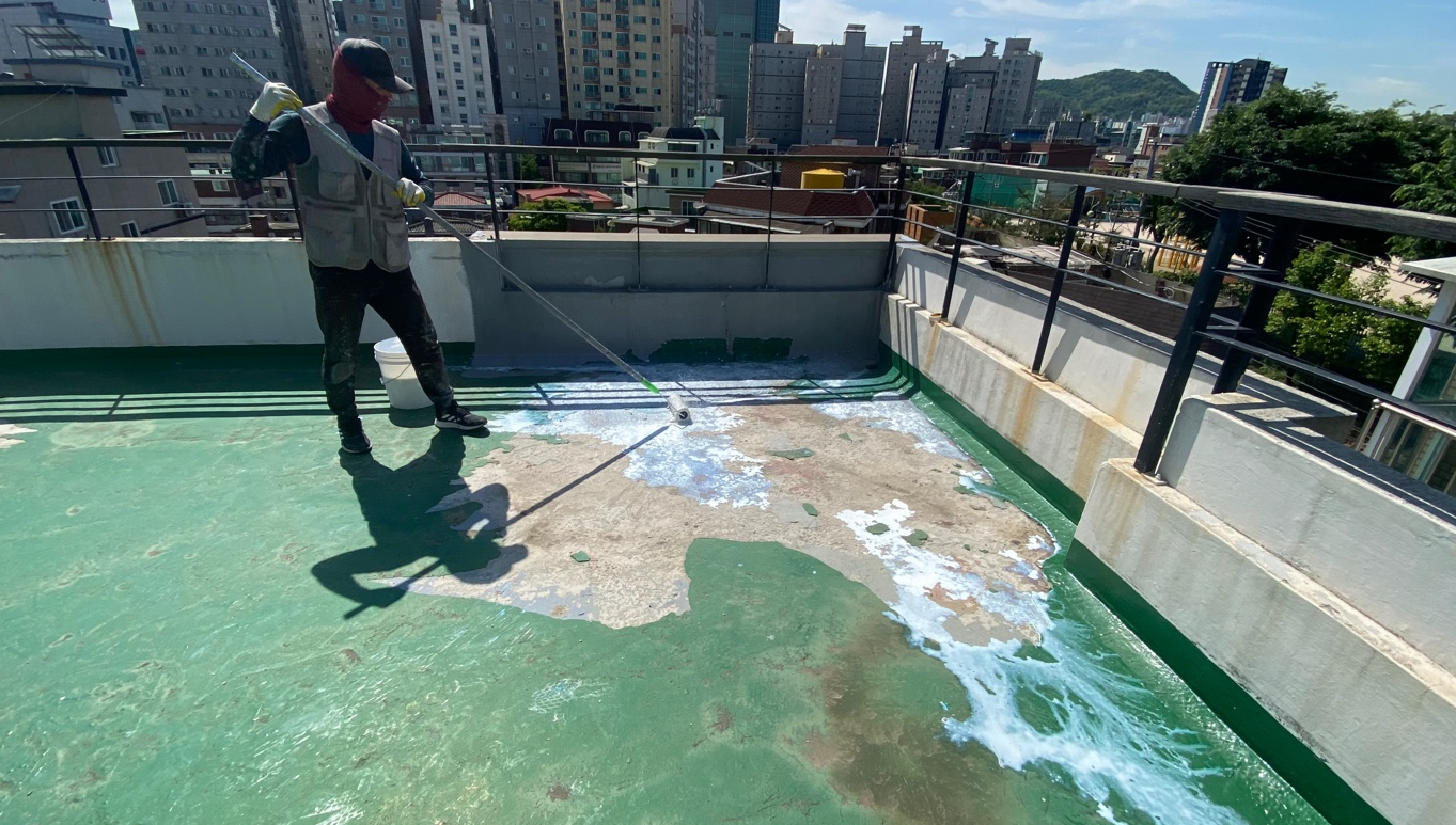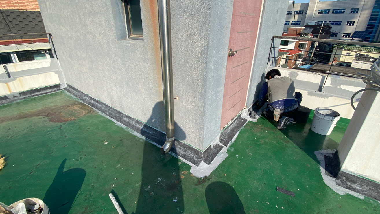 이제 자외선을 차단하여 방수층을 보호하기 위한 상도를 마지막으로 방수액과 방수시트를 함께 사용한 방수 공사의 모든 과정이 마무리됩니다. 시공 후 관리가 잘 된다면 옥상을 반영구적으로 사용할 수 있습니다.