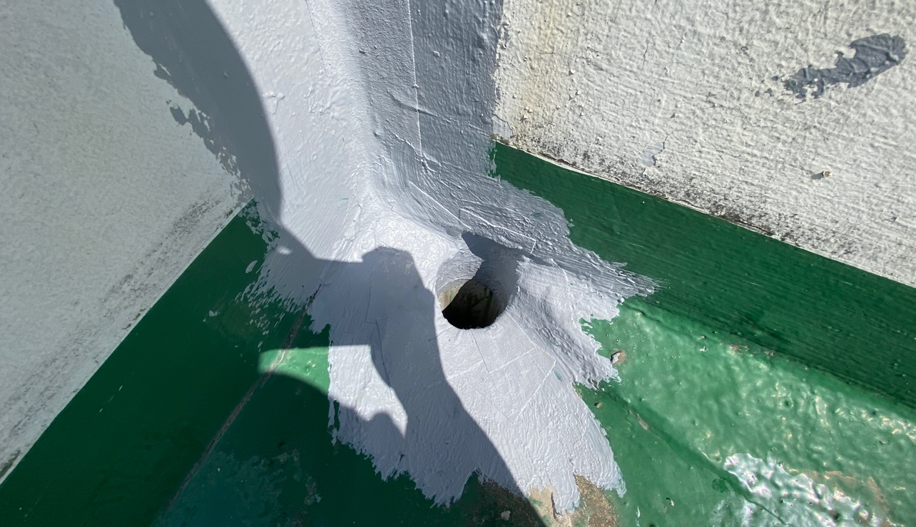 앞선 작업에서 시트를 부착할 때 사이에 약간의 틈이 생기게 됩니다. 그 틈으로 물이 들어가지 않도록 막는 작업이 보강 시트 작업입니다. 밴드 형태의 방수시트를 길게 붙여 작업합니다.