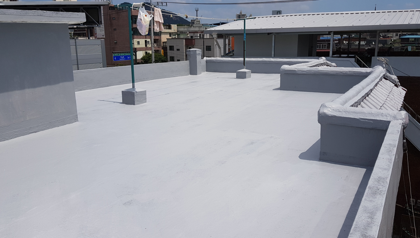 복합방수는 두 가지 이상의 방수 자재를 함께 사용하는 시공법입니다. 복합방수를 옥상에 시공할 때의 좋은 점은 무엇보다 방수력이 튼튼하다는 것입니다. 시트 작업에 이어 방수액을 도포하여 방수층을 쌓기 때문에 튼튼한 옥상을 만들 수 있습니다.