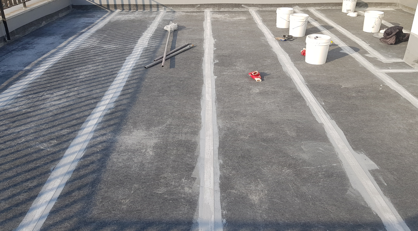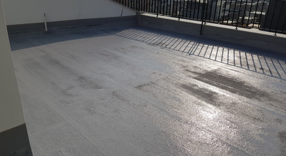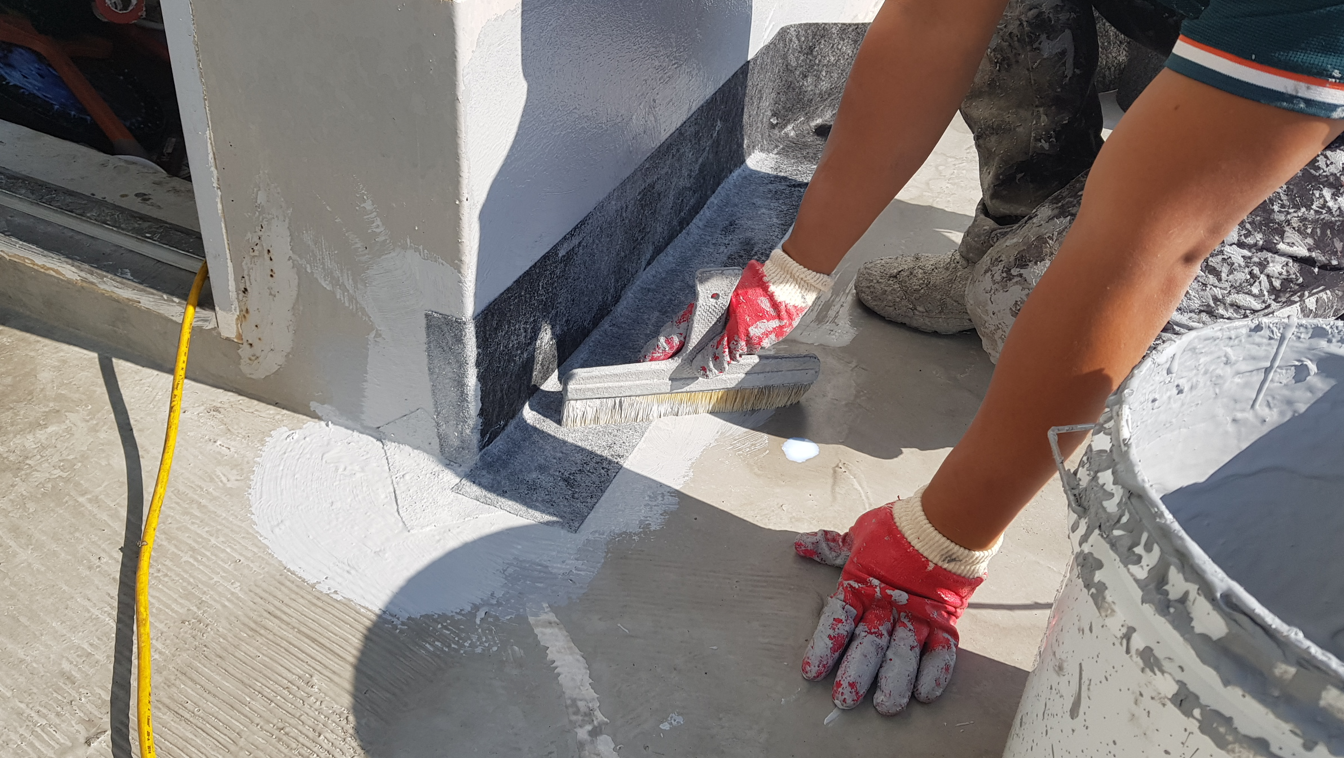 방수 시트 작업을 모두 마무리 한 후 방수액 도포 작업에 들어갑니다. 돌가루로 만든 친환경 방수액을 3번에 걸쳐 도포합니다. 인체에 무해하고 자극적인 냄새가 없어 시공 후 쾌적합니다. 방수 시트층 위에 방수액으로 방수층을 쌓는 작업입니다.