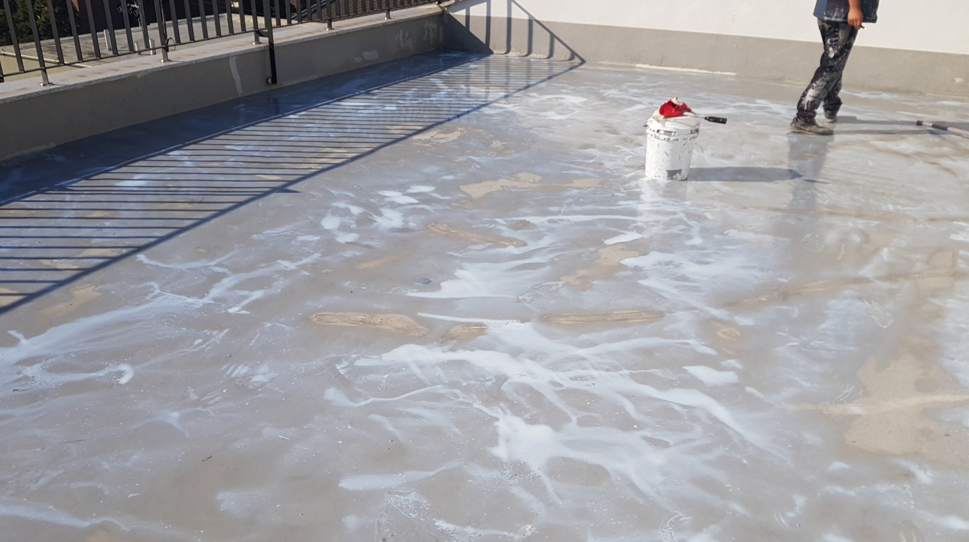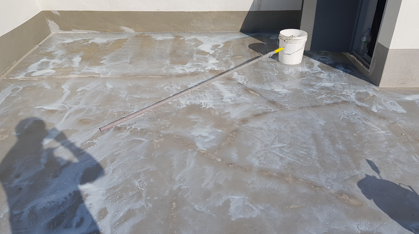 먼저 본격적인 작업에 앞서 바닥 정리와 물청소 등 기초 작업을 마친 후 프라이머 작업에 들어갑니다. 프라이머는 침투 방수액을 옥상 바닥 전체에 도포하는 작업으로 먼지와 이물질을 흡착하여 제거하는 역할을 합니다.