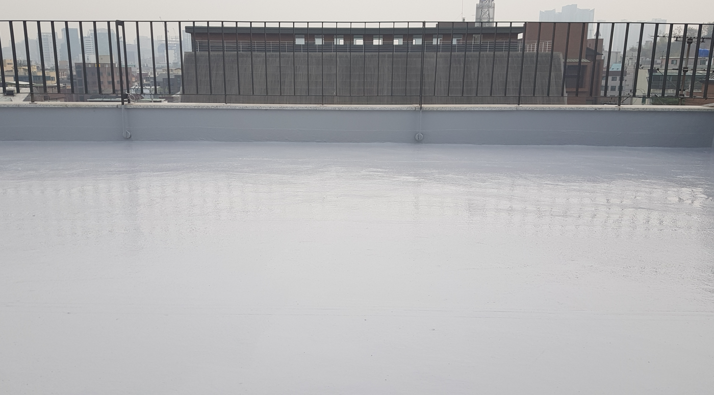 시트 작업에 이어 방수액 작업까지 끝낸 후 마지막으로 상도를 진행합니다. 상도는 자외선을 차단하여 방수층을 보호하는 역할을 합니다. 여기까지가 방수 전문 업체에서 진행한 복합 시트 방수의 모든 시공 과정입니다. 시공 부위의 크기가 작다면 스스로 해결할 수 있지만 크기가 크다면 방수 전문 업체에서 시공을 하여 반영구적으로 옥상을 사용할 수 있습니다.