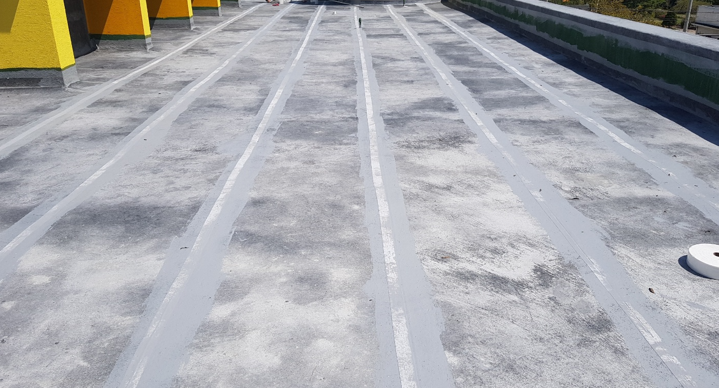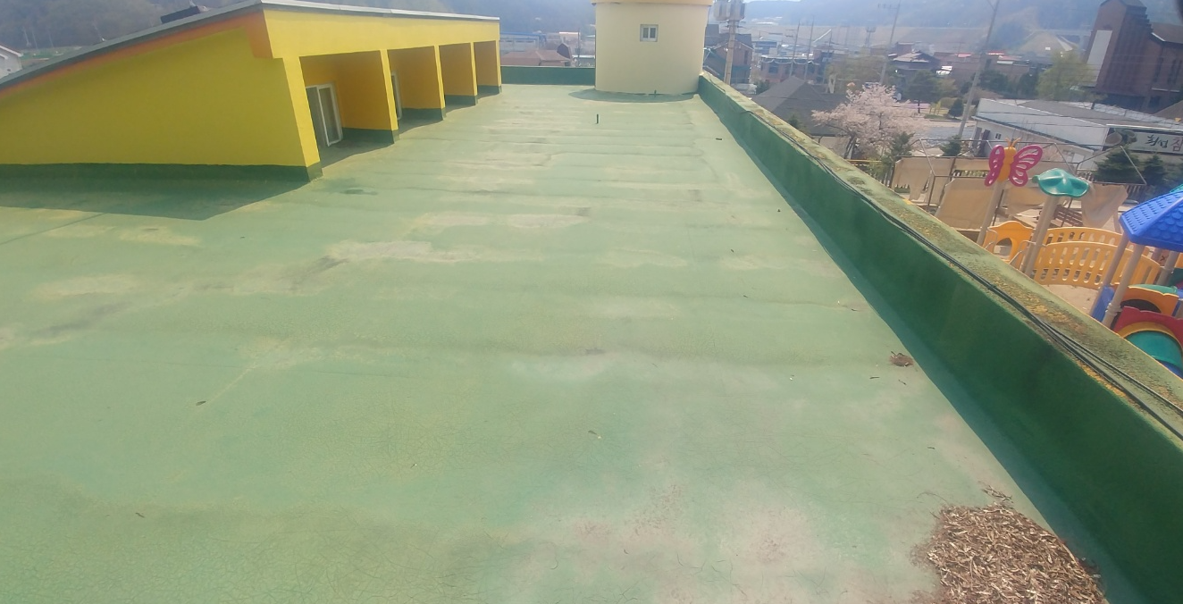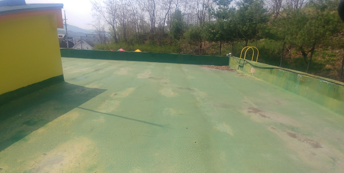 우레탄으로 옥상 방수 공사를 한 옥상의 모습입니다. 시공을 한 후 처음에는 괜찮았지만 시간이 지남에 따라 생긴 크랙으로 인해 하자가 발생했습니다. 누수의 원인인 크랙을 해결하기 위한 가장 효과적인 방법은 방수 시트를 이용하는 것입니다.