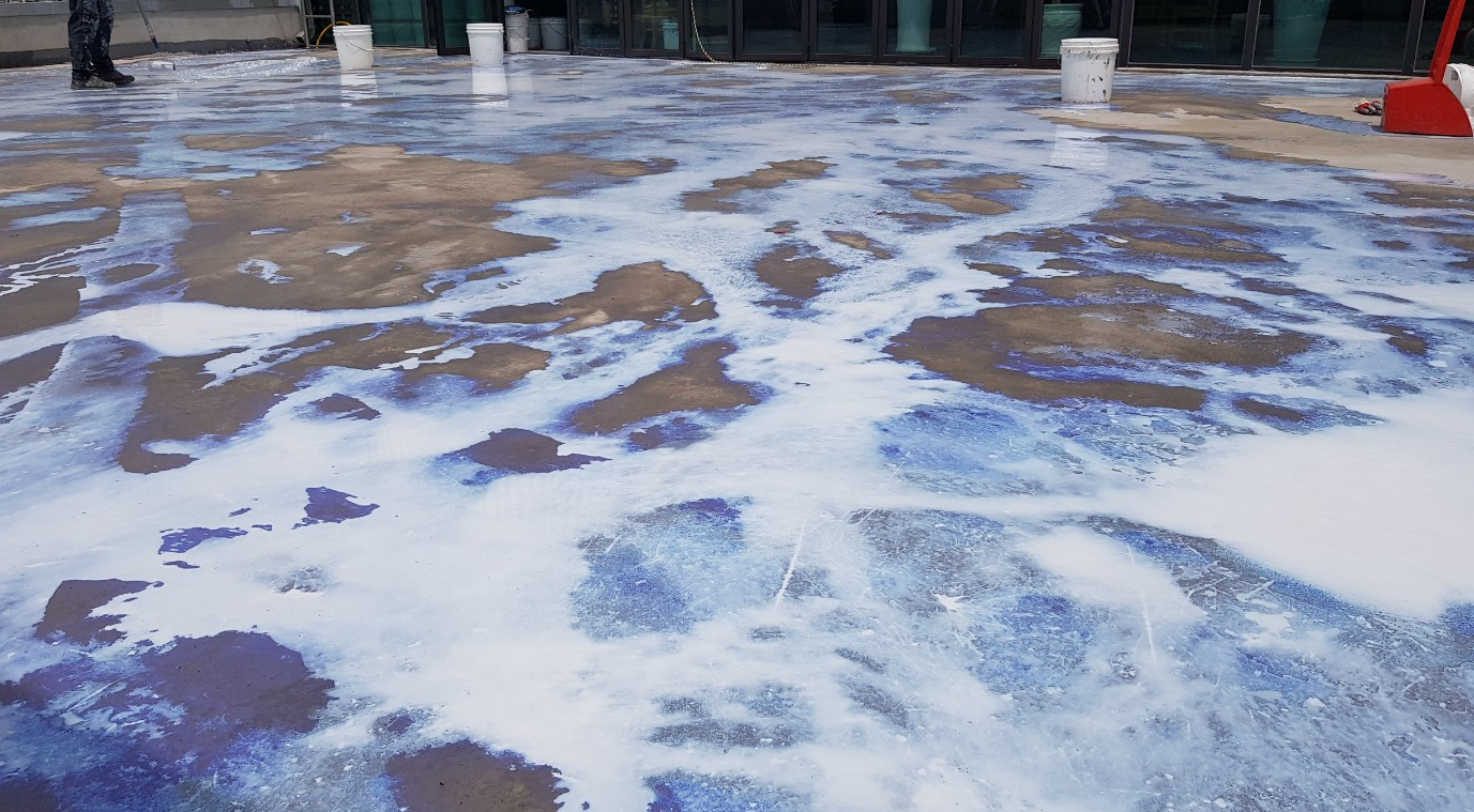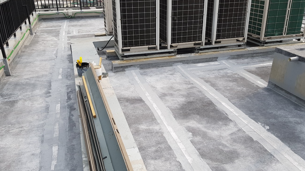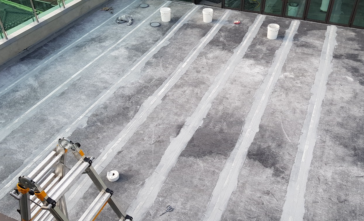 다음 단계는 프라이머 작업입니다. 프라이머는 침투 방수액을 옥상 바닥 전체에 도포하는 작업입니다. 침투 방수액은 그대로 바닥에 스며들어 방수 효과를 주고 미세한 먼지와 이물질을 접착하여 제거하는 역할을 합니다.