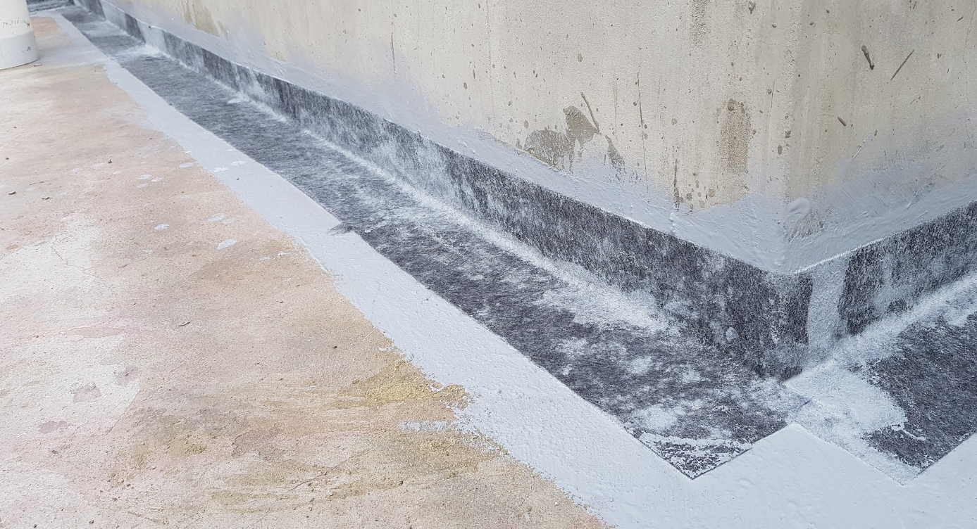 옥상에는 누수에 취약한 부분이 있습니다. 우수관과 조인트 부분이 이에 해당합니다. 이렇게 약한 부분에는 방수액과 방수시트로 다른 부분보다 한 번 더 작업해 주는 것이 큰 도움이 됩니다. 이 작업을 기초 시트 작업이라고 합니다.