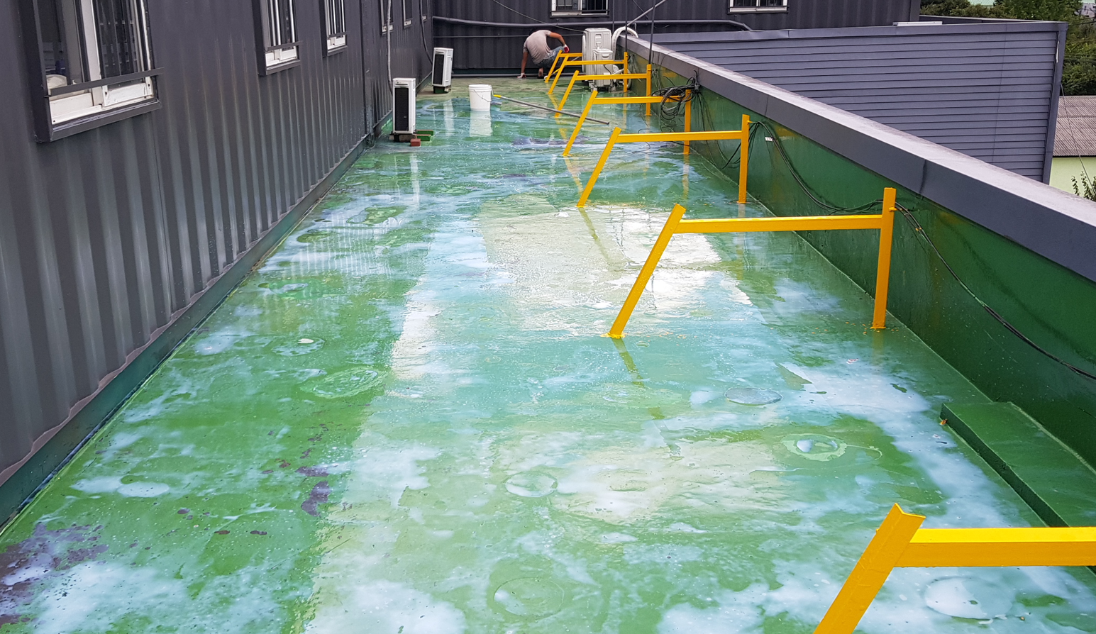 옥상방수의 마지막 과정은 상도입니다. 상도 작업은 자외선을 차단하여 방수층을 보호하는 역할을 합니다. 이처럼 복합시트방수로 옥상방수를 하면 크랙을 확실하게 잡을 수 있어, 튼튼하고 확실한 시공을 할 수 있습니다. 완성된 옥상은 상처가 나더라도 그 부분만 계속해서 고쳐서 쓸 수 있는 반영구적인 수명을 갖게 됩니다.