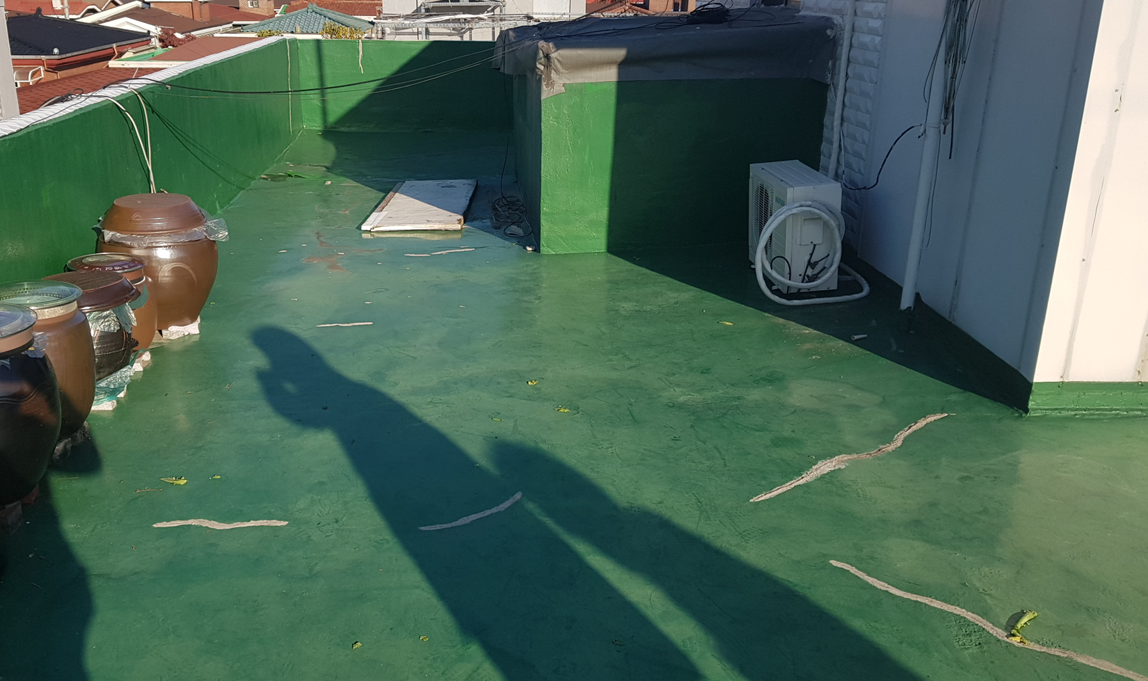 마지막으로 상도 작업을 진행합니다. 상도는 자외선을 차단하여 방수액을 보호하는 역할을 합니다. 이렇게 방수액과 방수시트를 함께 사용하면 우레탄 방수의 문제점을 제대로 해결하여 튼튼한 옥상방수를 할 수 있습니다. 완성된 옥상은 계속해서 고쳐쓸 수 있는 반영구적인 수명을 갖게 됩니다.
